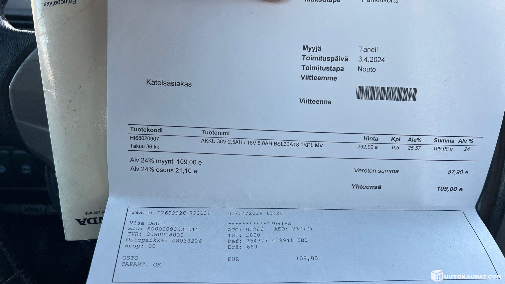 Varsinais-Suomen Autocenter Oy lists, Huutokaupat.com sells