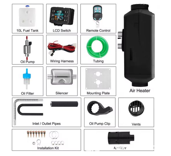 The kit includes an LCD display control panel/thermostat to adjust the heater's functions.