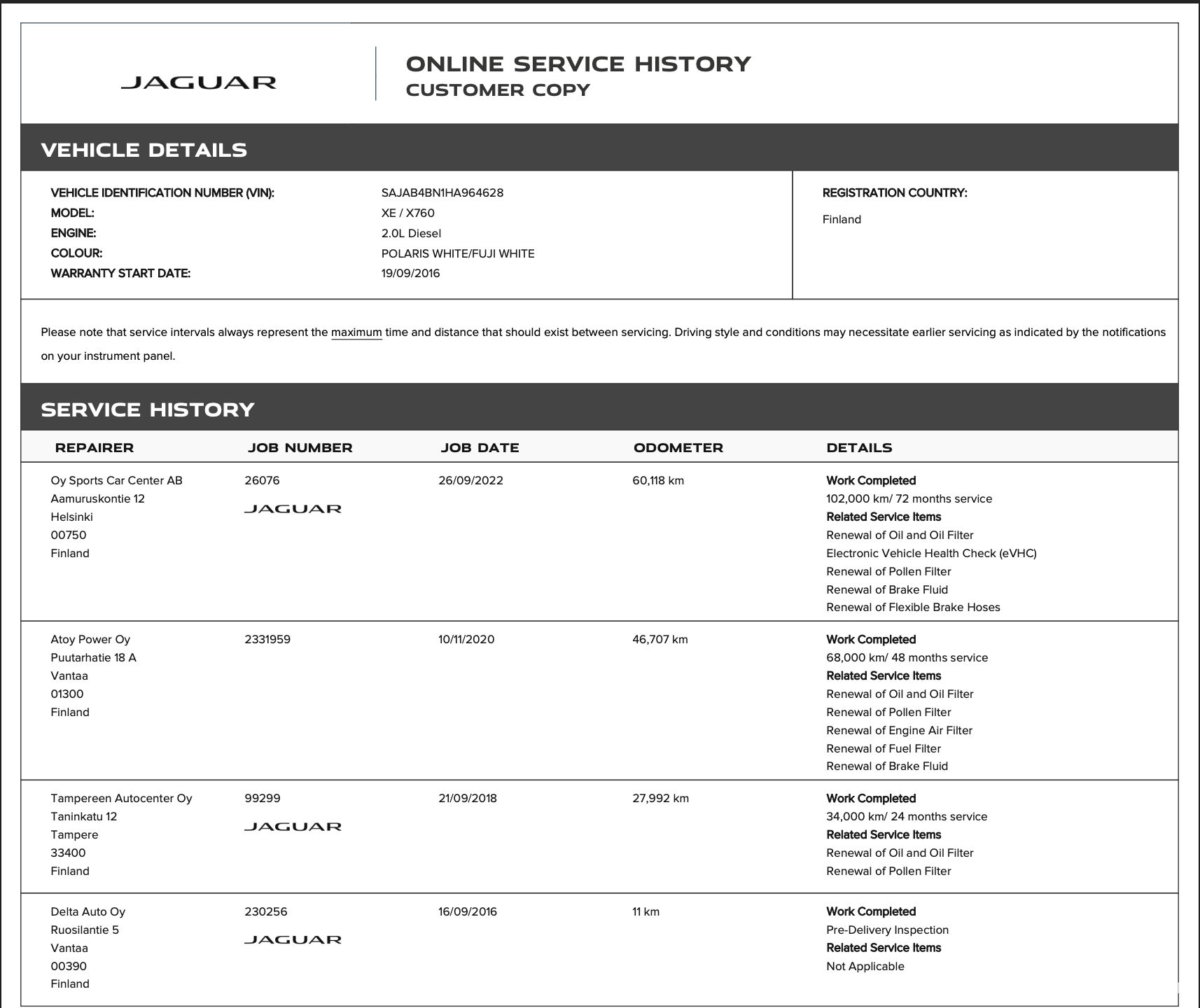 February 2020 at 38,000 km – Timing chain repair carried out