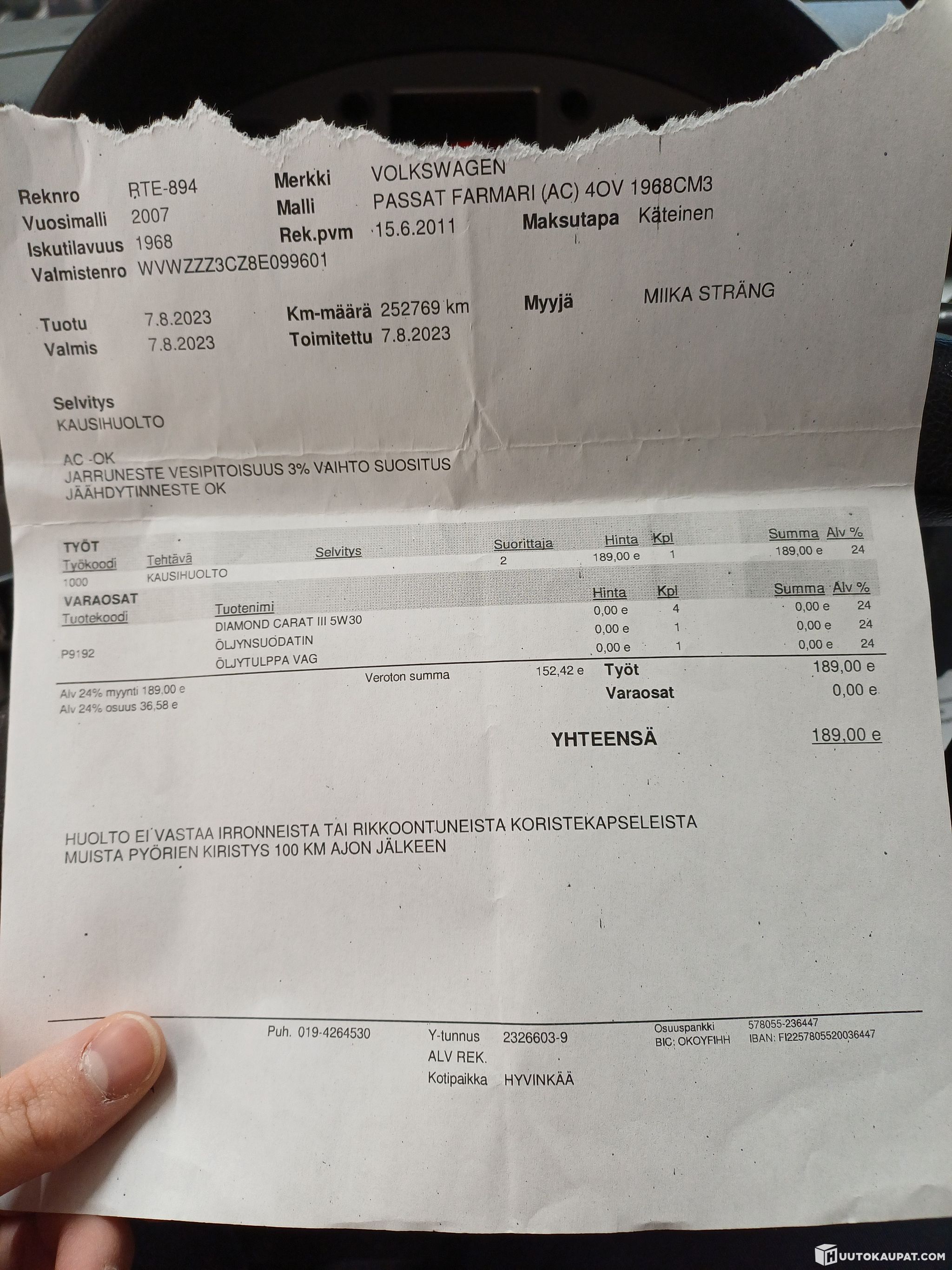 Varsinais-Suomen Autocenter Oy lists, Huutokaupat.com sells