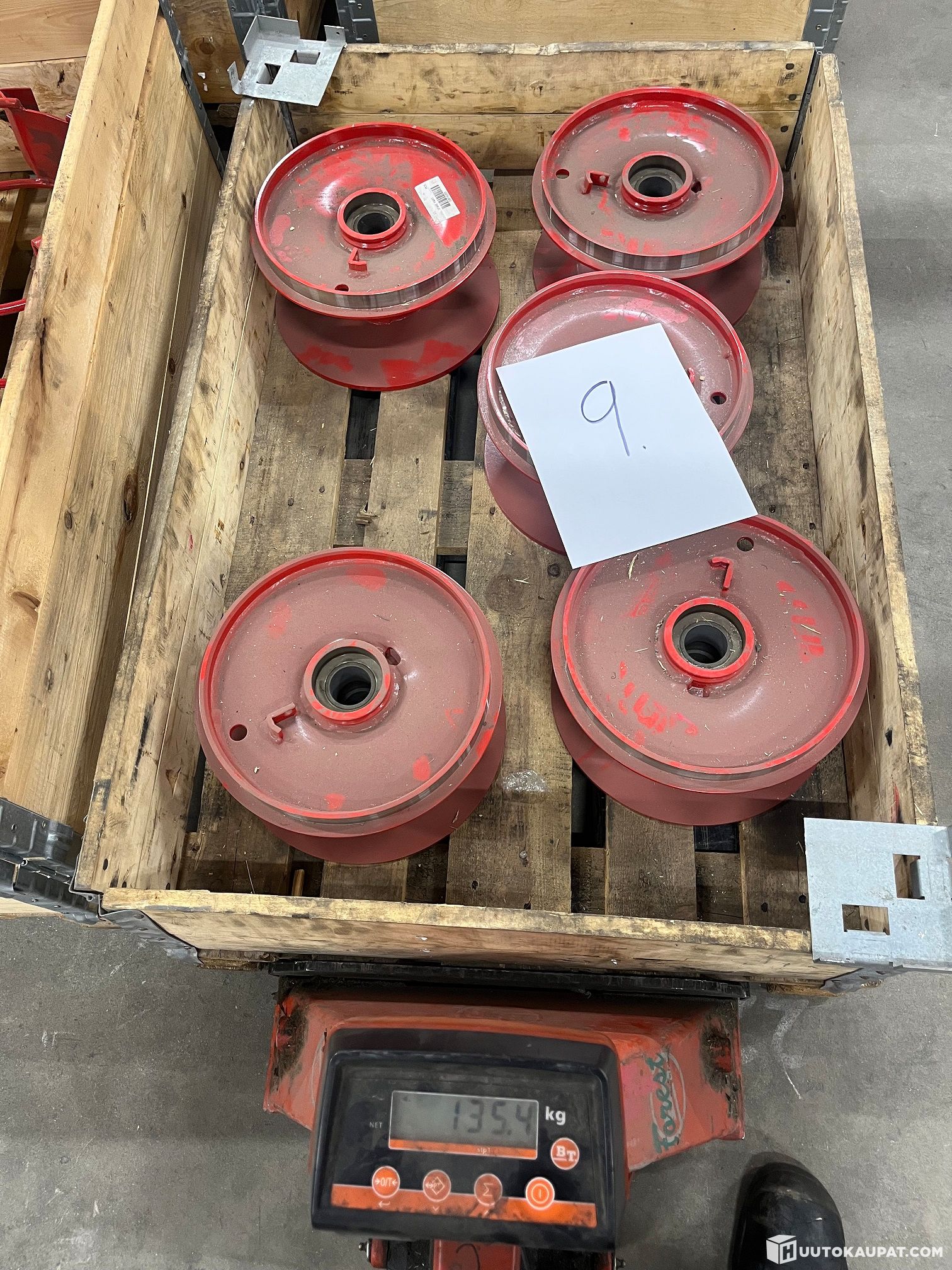 Pallets and pallet collars are not included in the auction; the buyer must remove the items from the pallets on collection. If desired, the buyer may purchase the pallets for €5 each (excl. VAT) and the collars for €10 each (excl. VAT); payment in cash on collection.