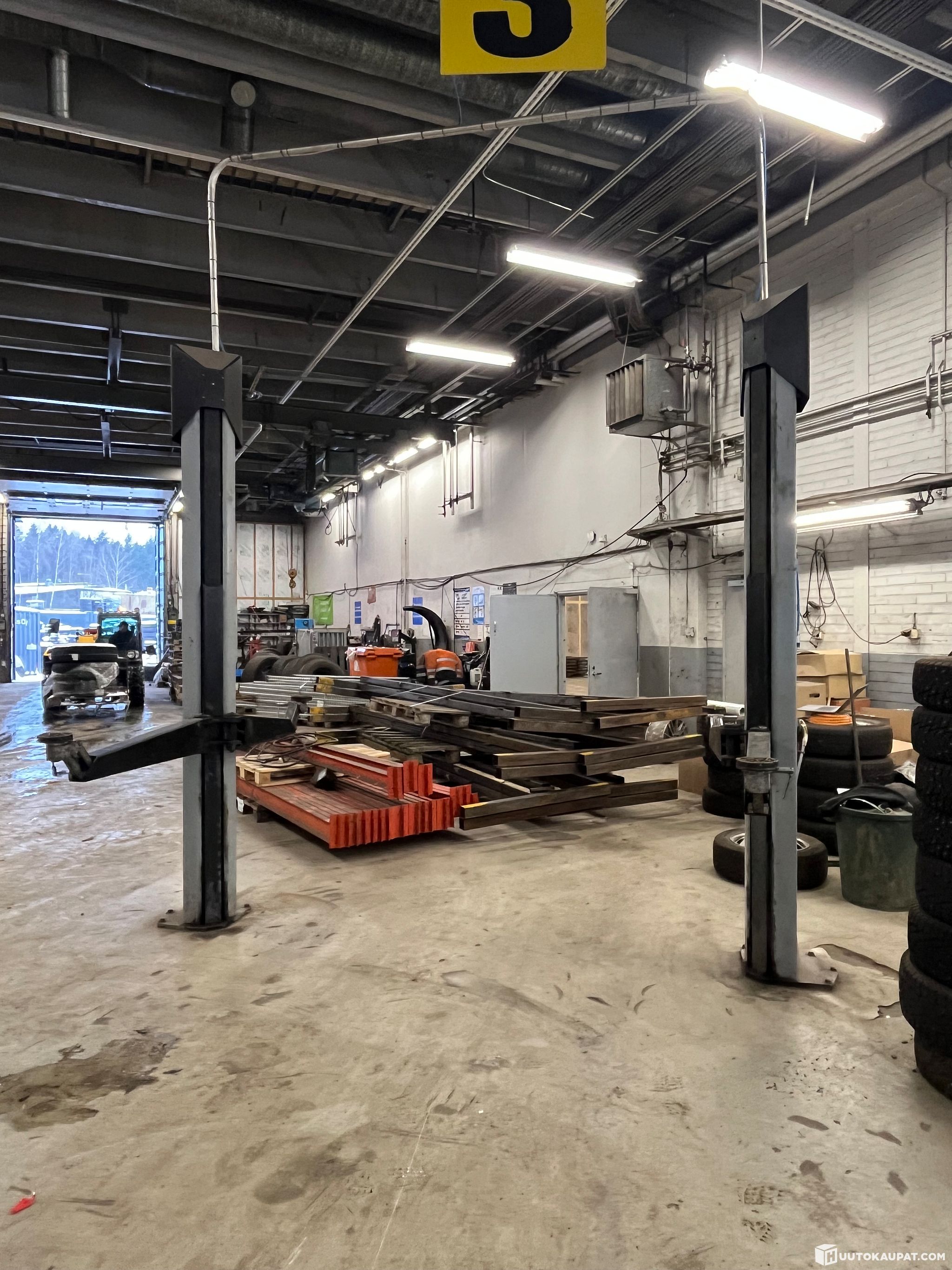 The lift has been used in a tyre shop and is surplus following the closure of the service point.