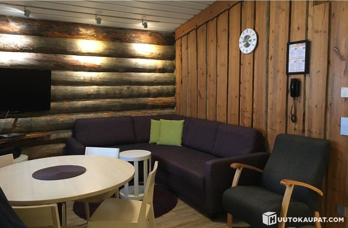 The unit is a high-quality semi-detached apartment refurbished in 2016. There are beds for two in the bedroom and two on the sofa bed. The apartment also has a soapstone fireplace, a fully equipped kitchen, a private sauna and WiFi. There is a heating socket for a car.