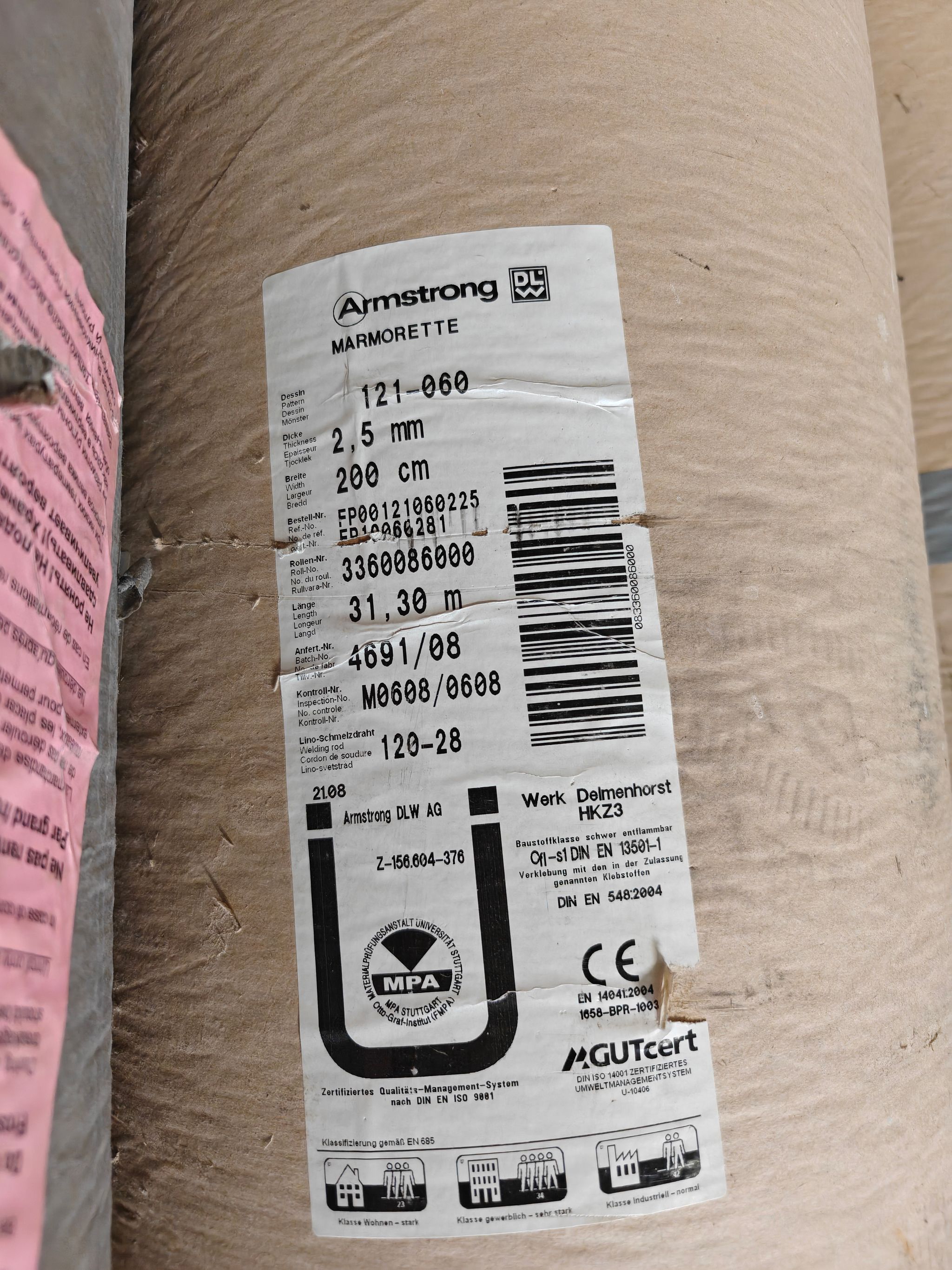 Armstrong linoleum-mattoa, Lahti
