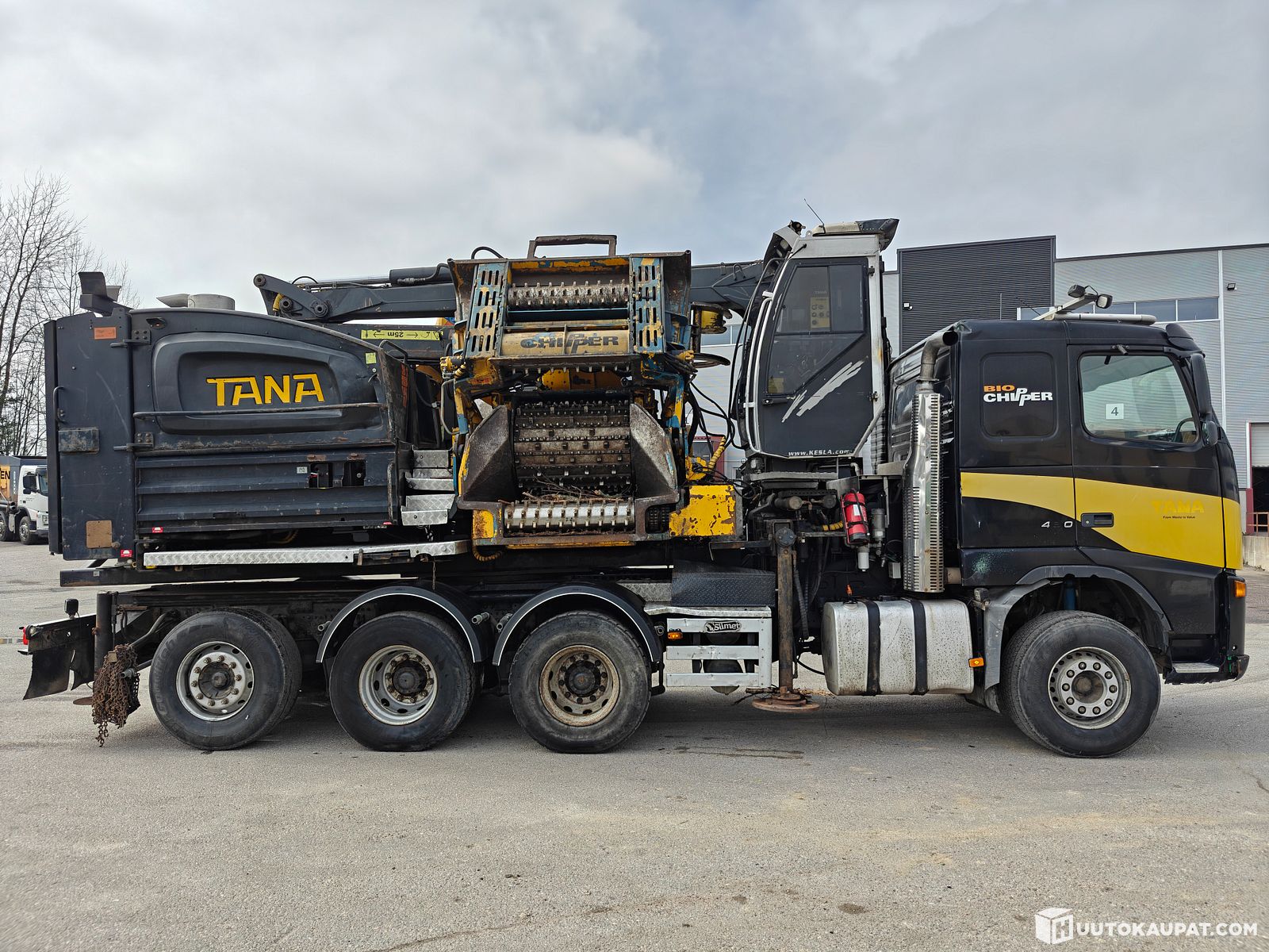 Volvo FH12 8x4R 12.1, Hakkuri: Tana Bio Chipper (KPA-252) EMK Energiamurskaus- ja kuljetus Oy konkurssipesä (3302121-1), Kirkkonummi