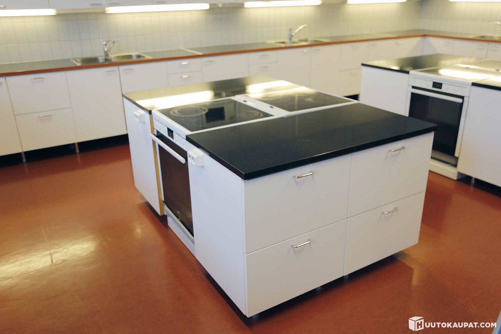 Keittiösaareke: Kivitasot, laatikostot, liesituulettimet, liedet. KRM3511, Kirkkonummi