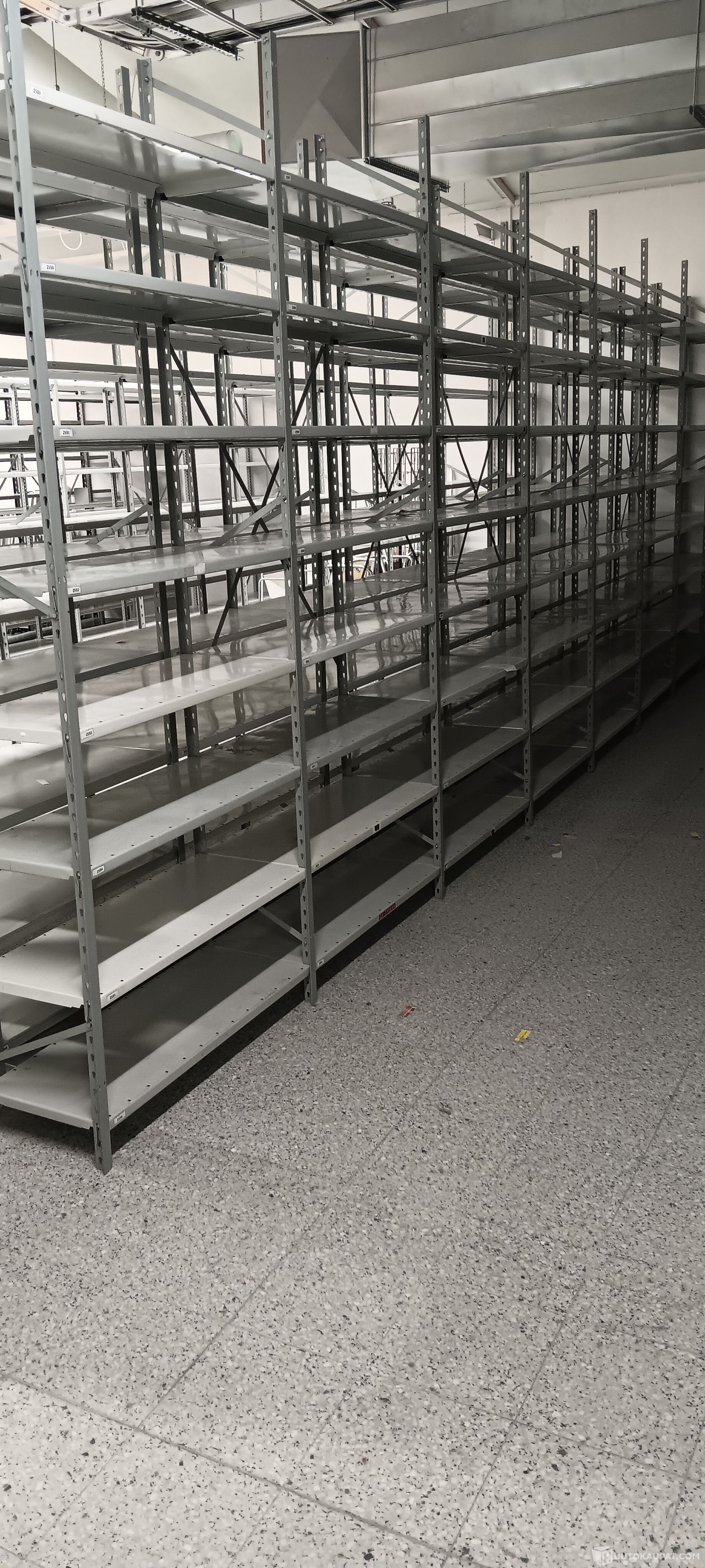 Hyllyt on noudettava erikseen sovitusti 13.-16.10. välisenä aikana Vihdin Otalammelta. Ostaja purkaa ja lastaa tavarat itse. Käytössä on mm. rullakoita ja pumppukärryt. Tilassa on lastauslaiturit sekä pakettiautolle että kuorma-autolle.