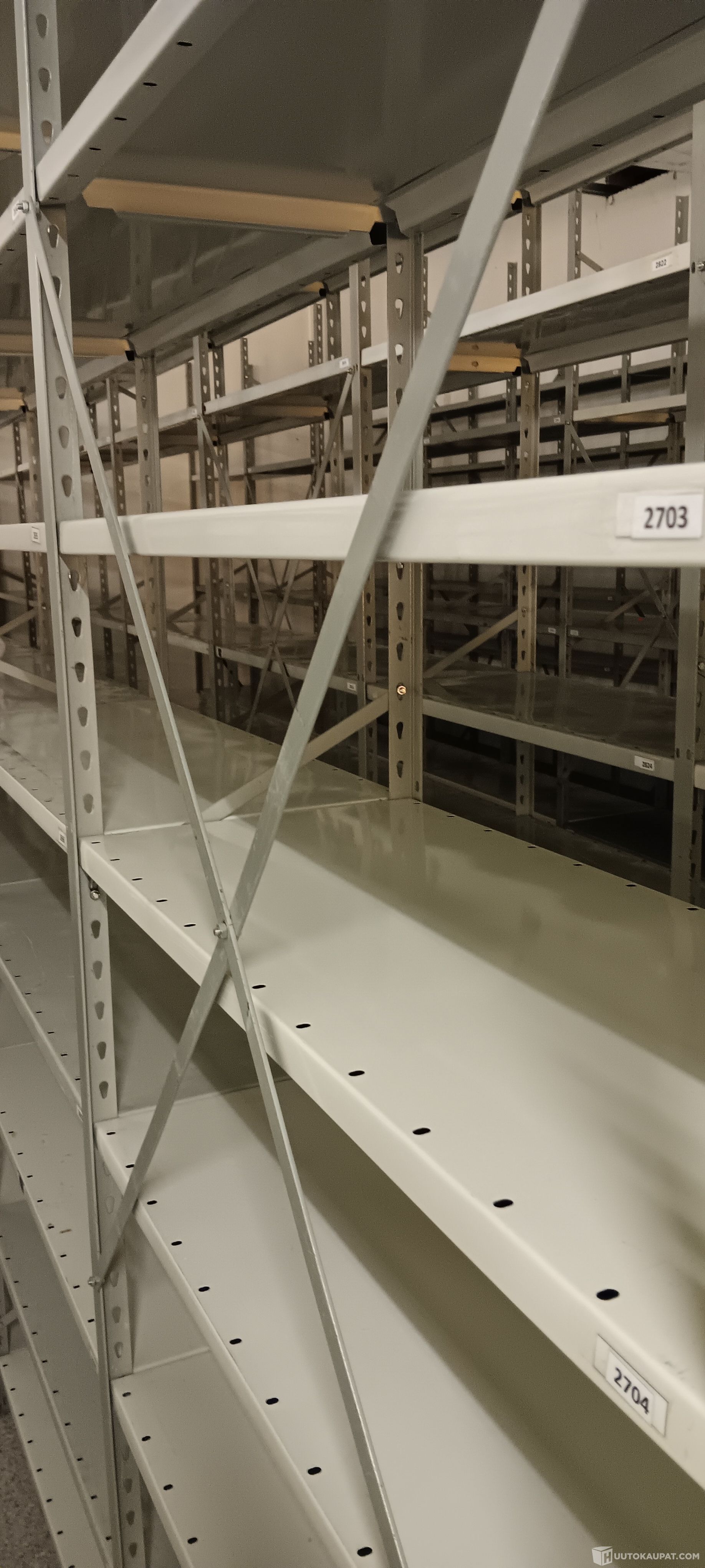 Huutoon kuuluu kaksi kuvassa olevaa 40 cm syvää hyllyriviä, ei muita kuvissa näkyviä hyllyjä eikä tavaroita.