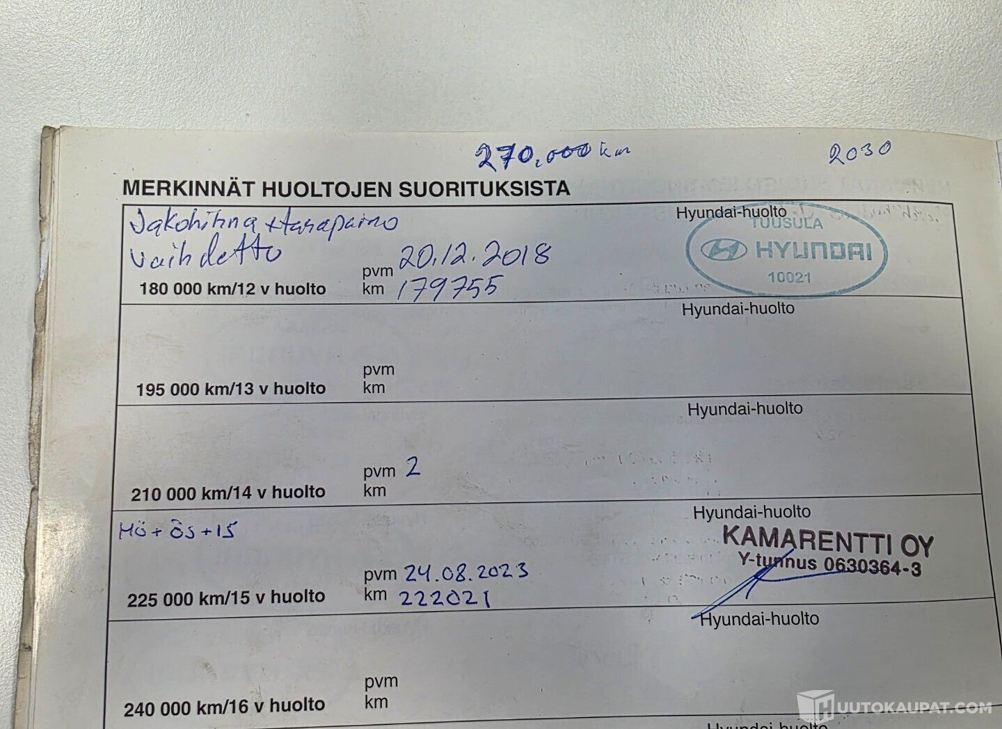 • Hyvä huoltohistoria (kts.kuvat)