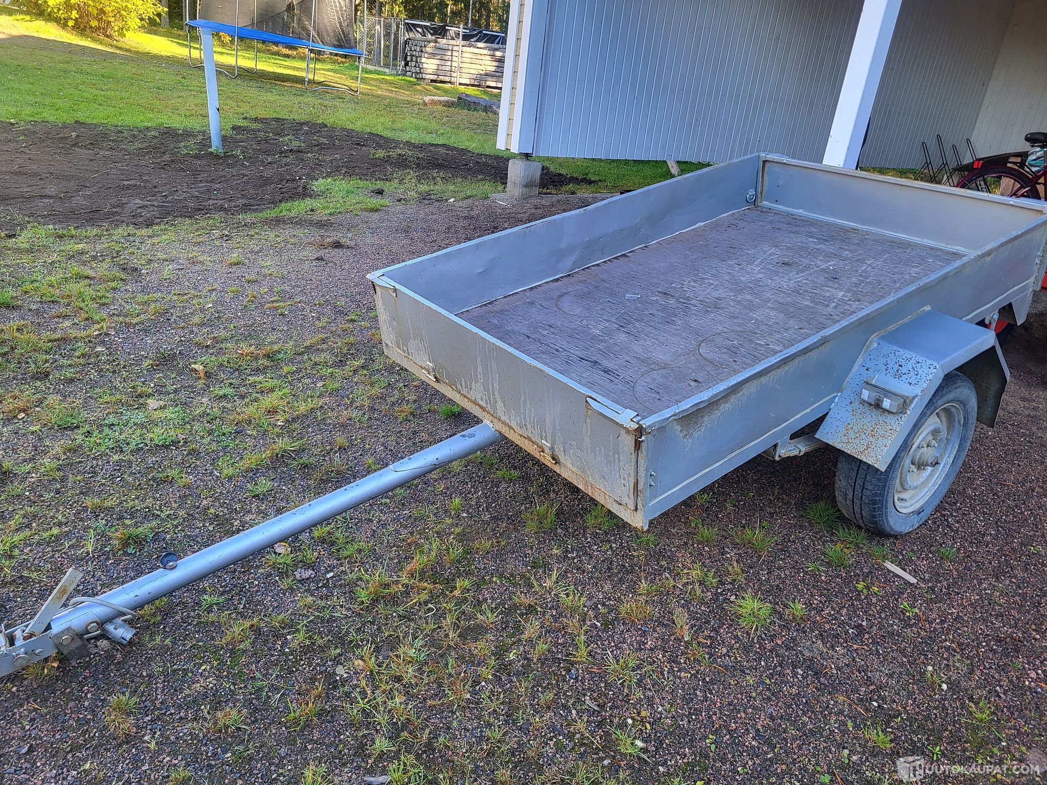 Tässä sopivan pieni, siisti ja kevyt peräkärry. Sopii hyvin mönkijänkin vedettäväksi.