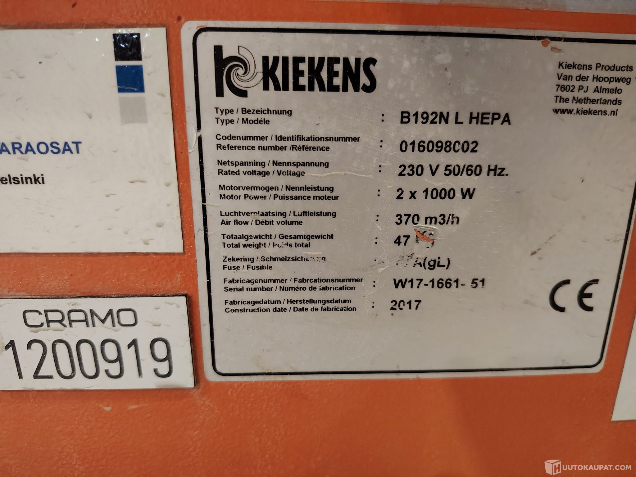 Pölynimuri Kiekens B192 HEPA M-CLASS, Vantaa