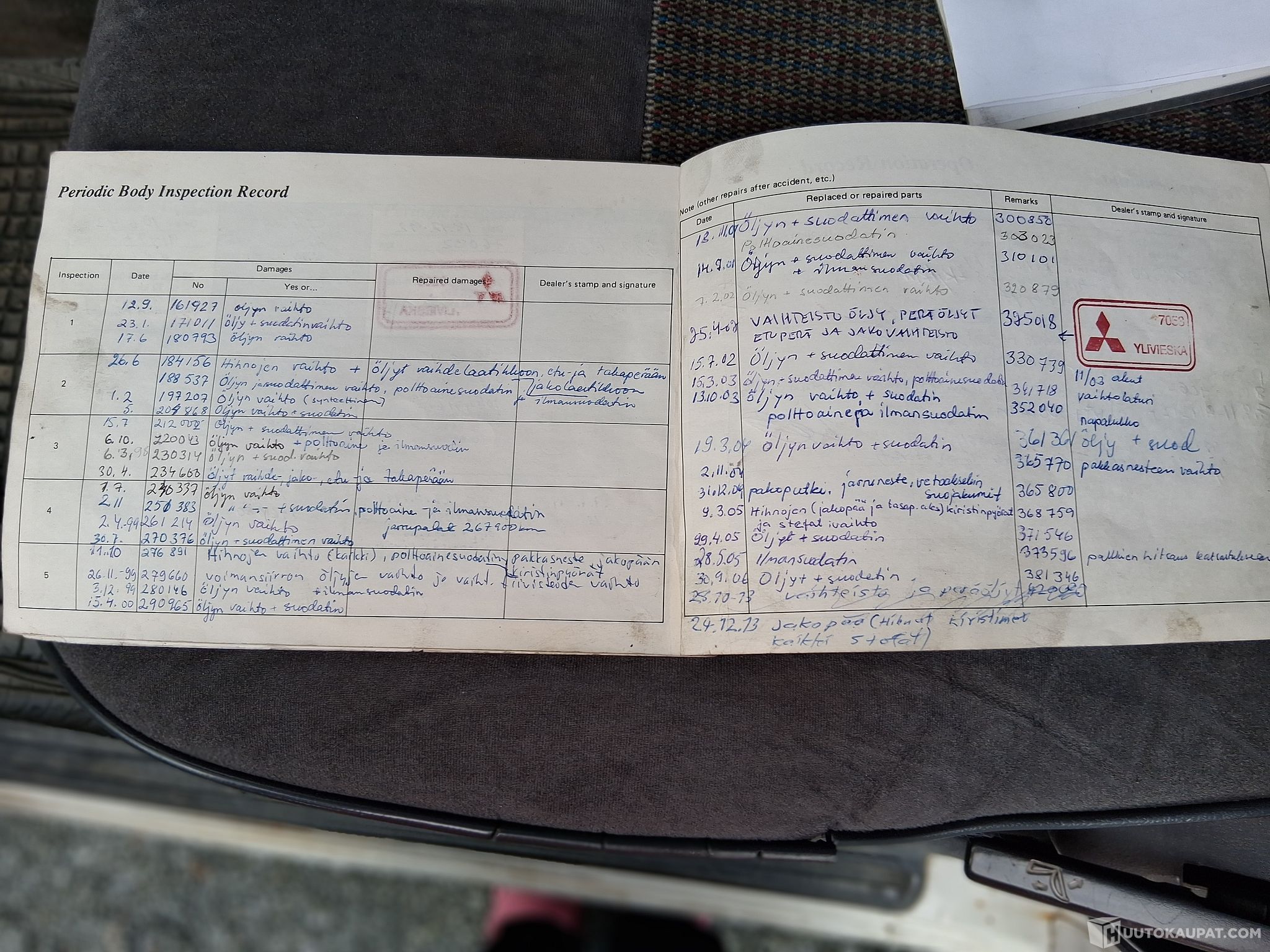 Peltivaurioita runsaasti ja sisustus takaosassa kulunut