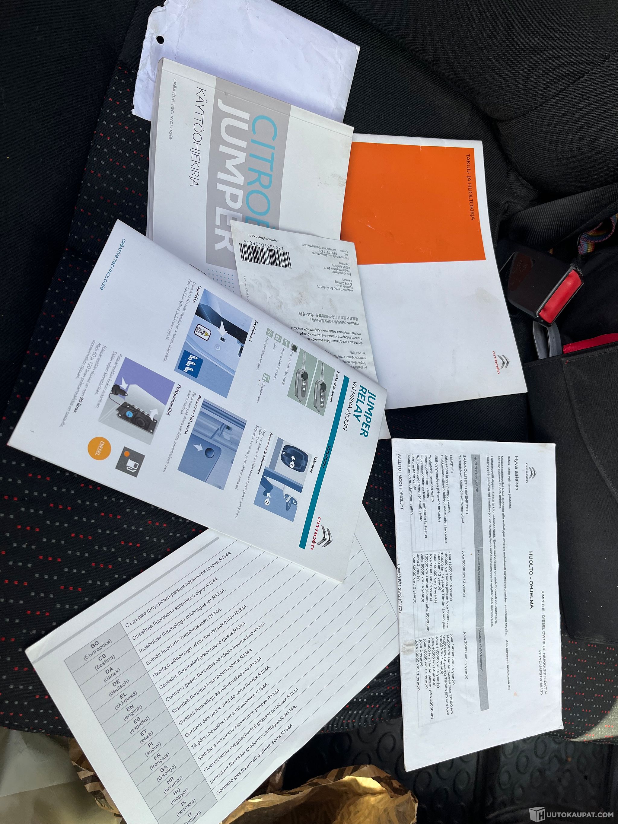# Huoltokirja, Suomalainen käyttöohjekirja, kuitteja mukana
