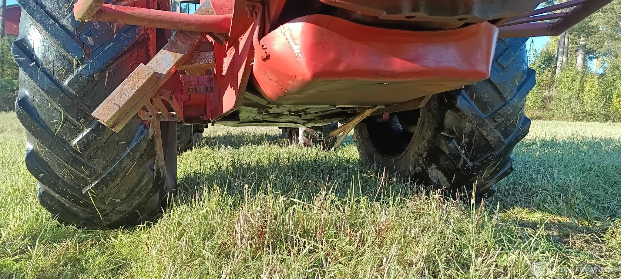 Kärrin veto toimii ajovoimanotolla. Etu ja takapäässä veto , todella maastokelpoinen kapea näppärä kone ,