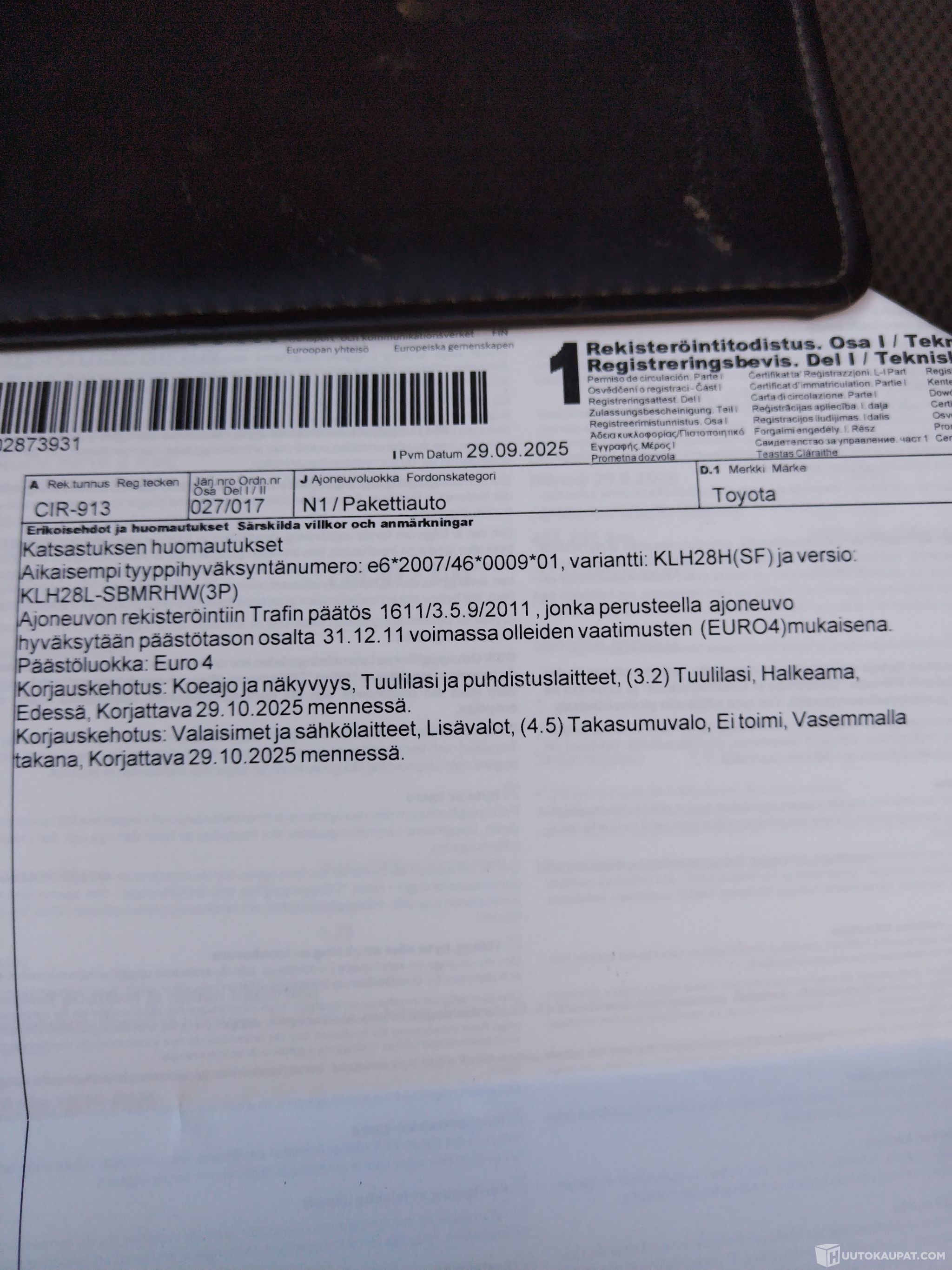 Ajoneuvo noudettava 7vrk kuluessa huutokaupan päättymisestä ellei toisin sovita -Huutokaupat.com.