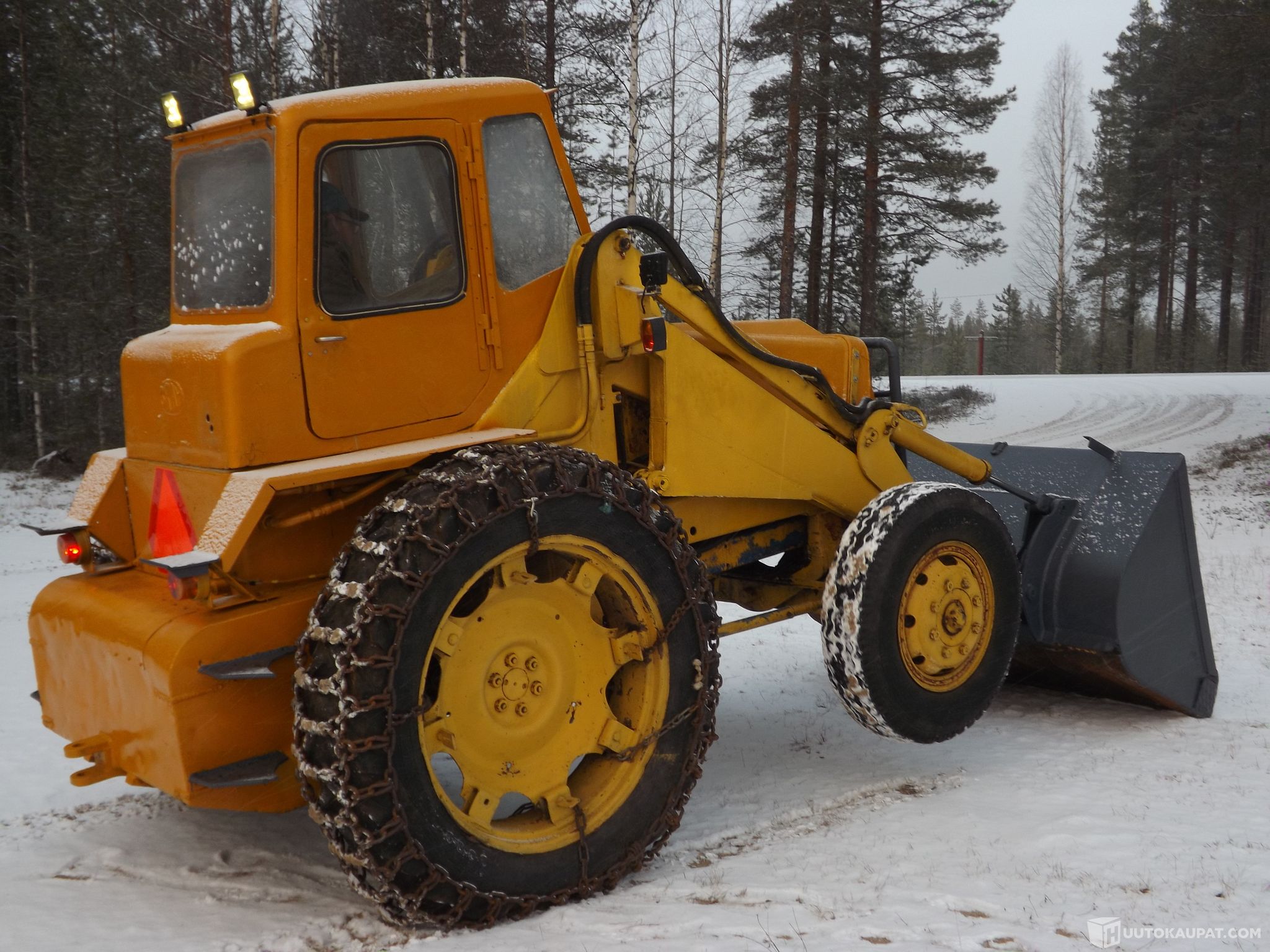 Kone on täysin käyttökuntoinen ,,muttei museokuntoinen Renkaat vanhat ja pykineet,,,Pitävät ilman ja suojana on ketjutkin.Kuormaaja ja kauha pysyvät asennossaan (Testattu yli 2 vrk:tta eikä laskeudu , tietenkin johtuu meillä tehdyistä sylinterien tiivisteiden vaihdosta ja uudesta Hydrauliöljystä) Kuomaaja
