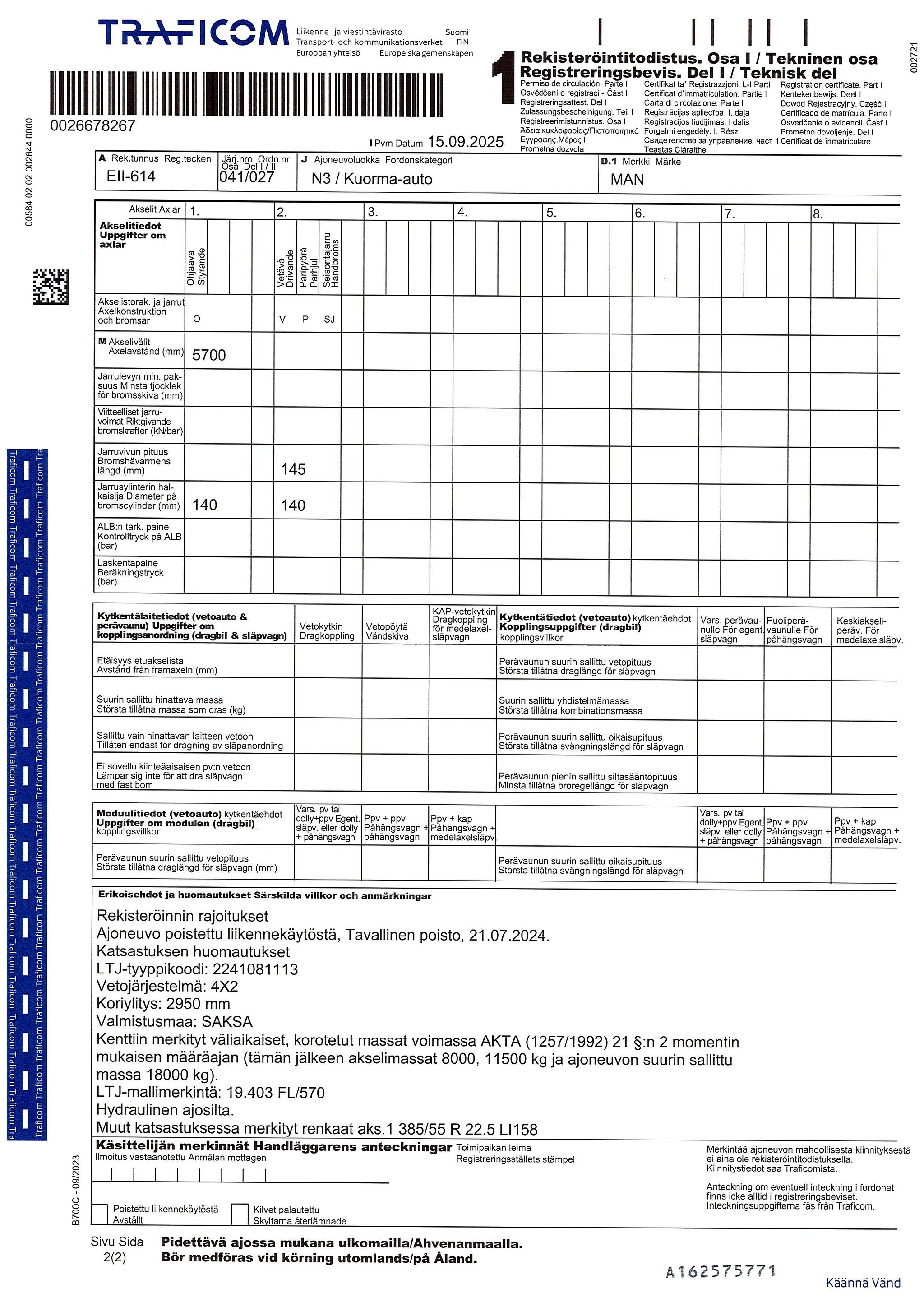 Kuljetus J & J Mäki Oy ilmoittaa, Huutokaupat.com myy