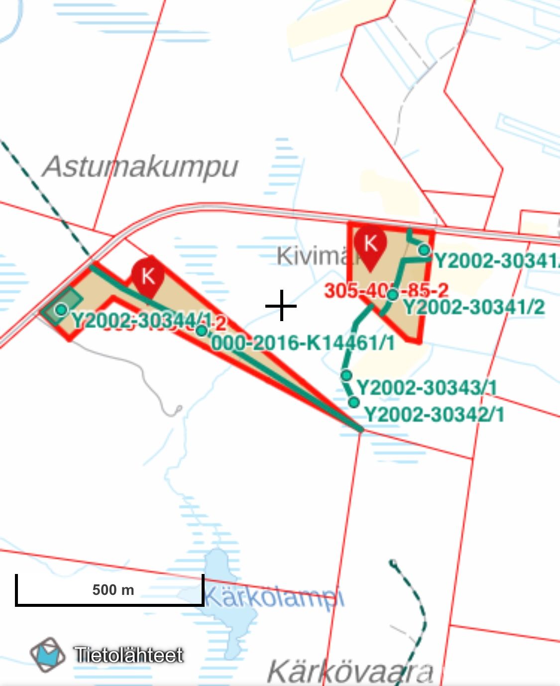 -Kiinteistön pinta-ala kr otteen mukaan 12,37 hehtaaria kahdessa palstassa.