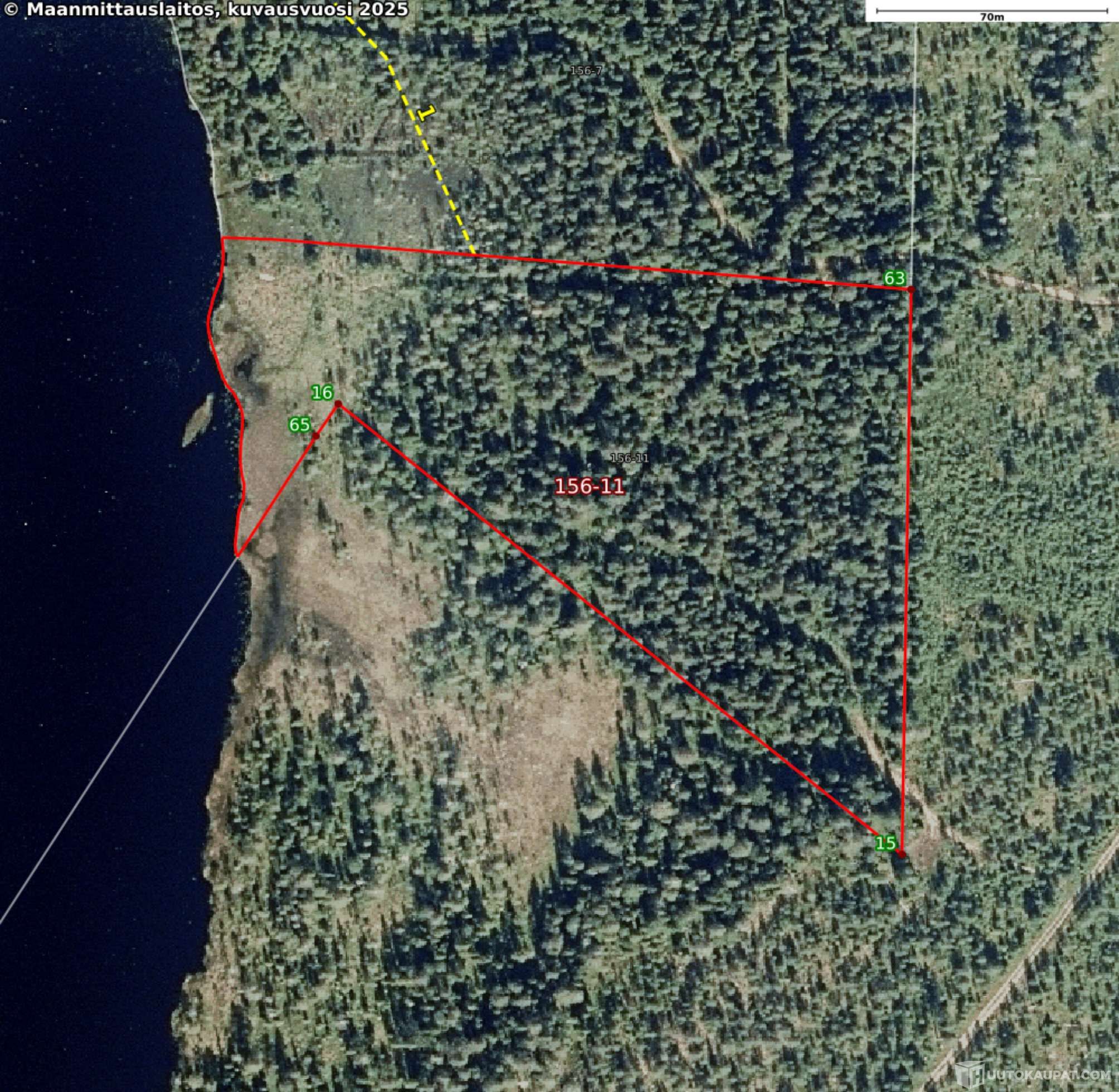 Hirvaan ja Songan välisessä erämaassa Oitojärven rannassa sijaitseva metsäkiinteistö Oitolampi reknro 698-408-156-11.