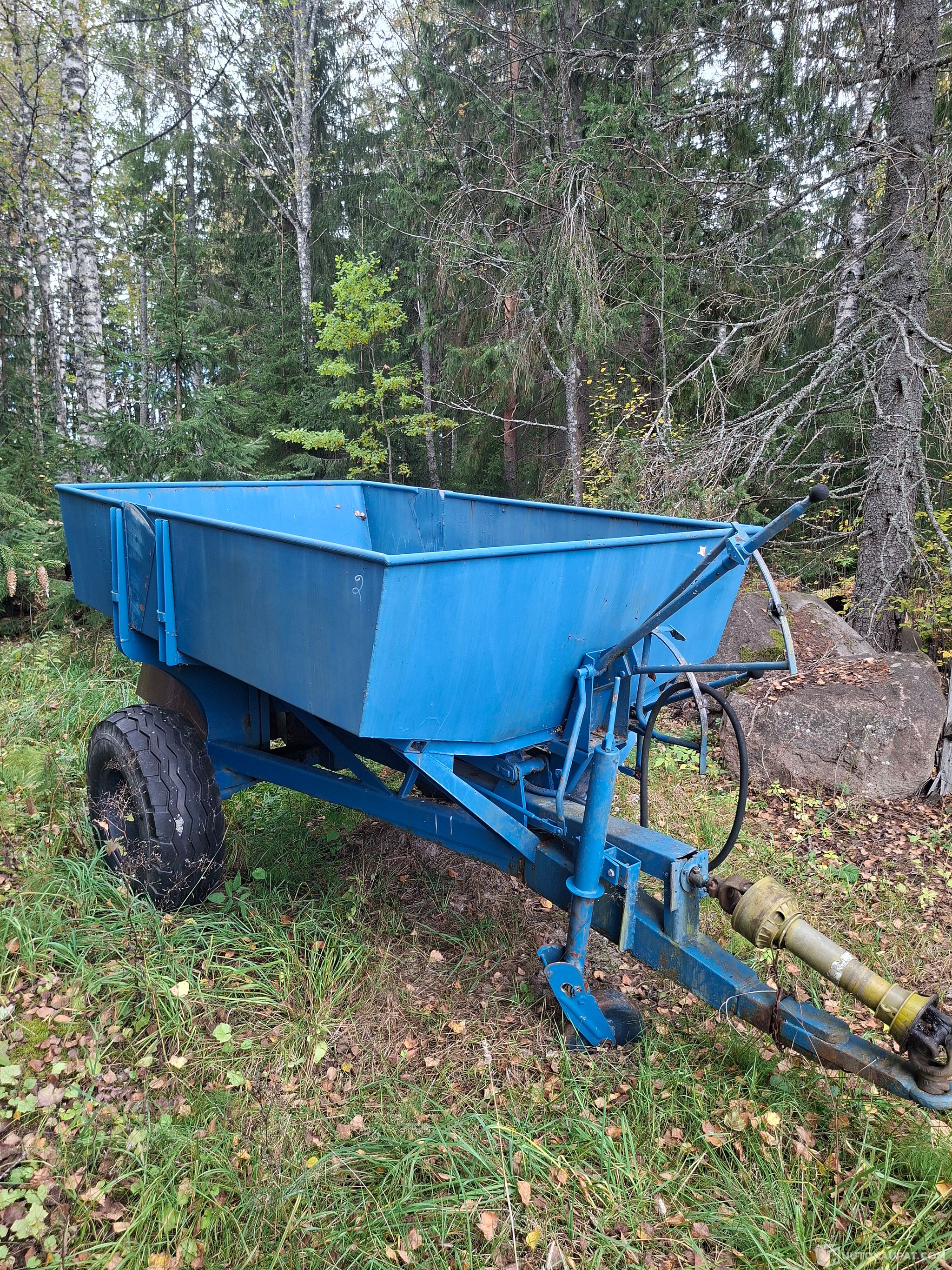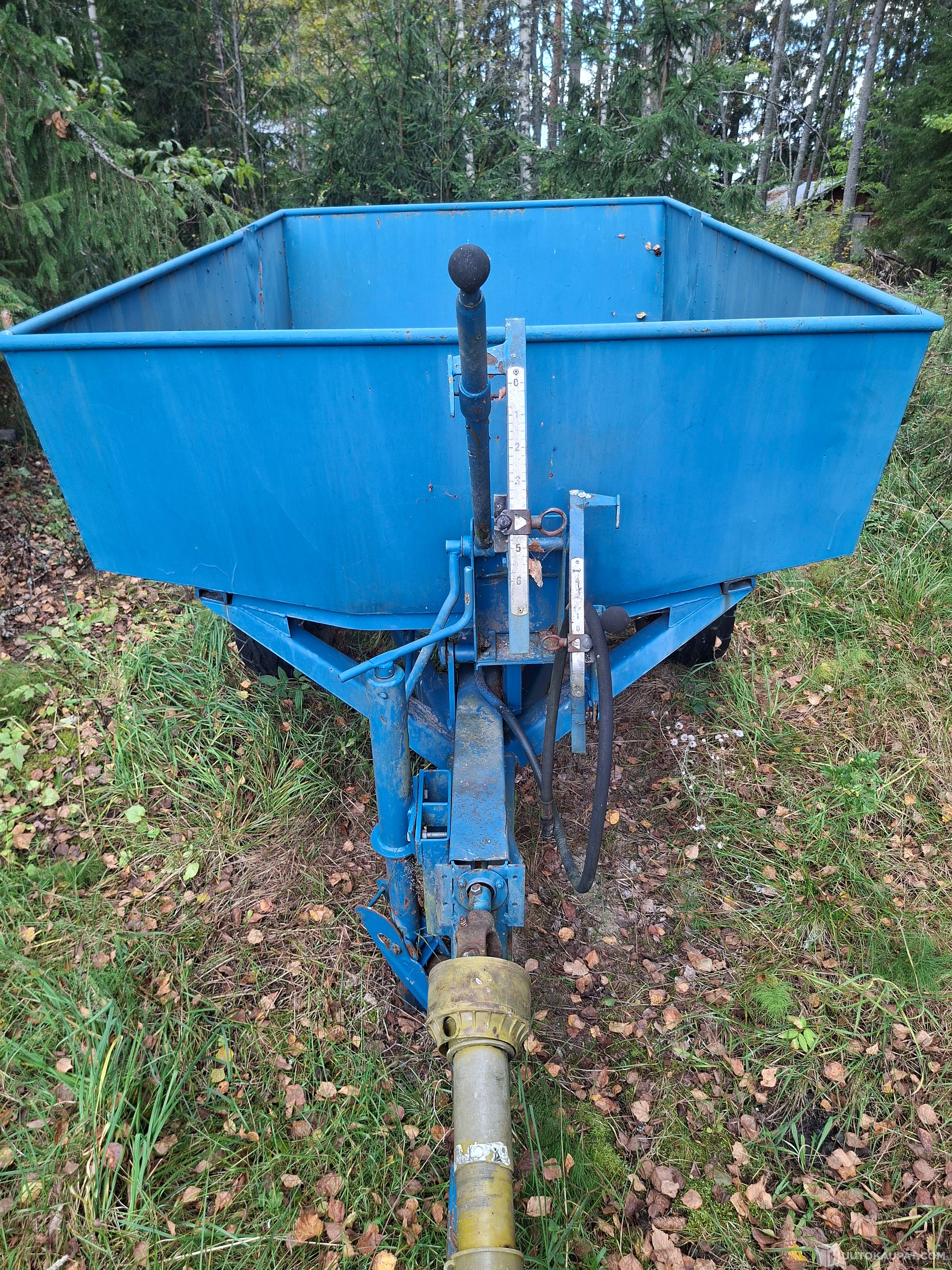 Perässävedettävä apulannan levitin, käy myös suolan ja hiekoitushiekka levitykseen. Hydraulisesti kippaava lava ja levitys lautasen pyöritys kardaanilla. Hyvät renkaat. Vesimitta laatikolla noin 2m3.