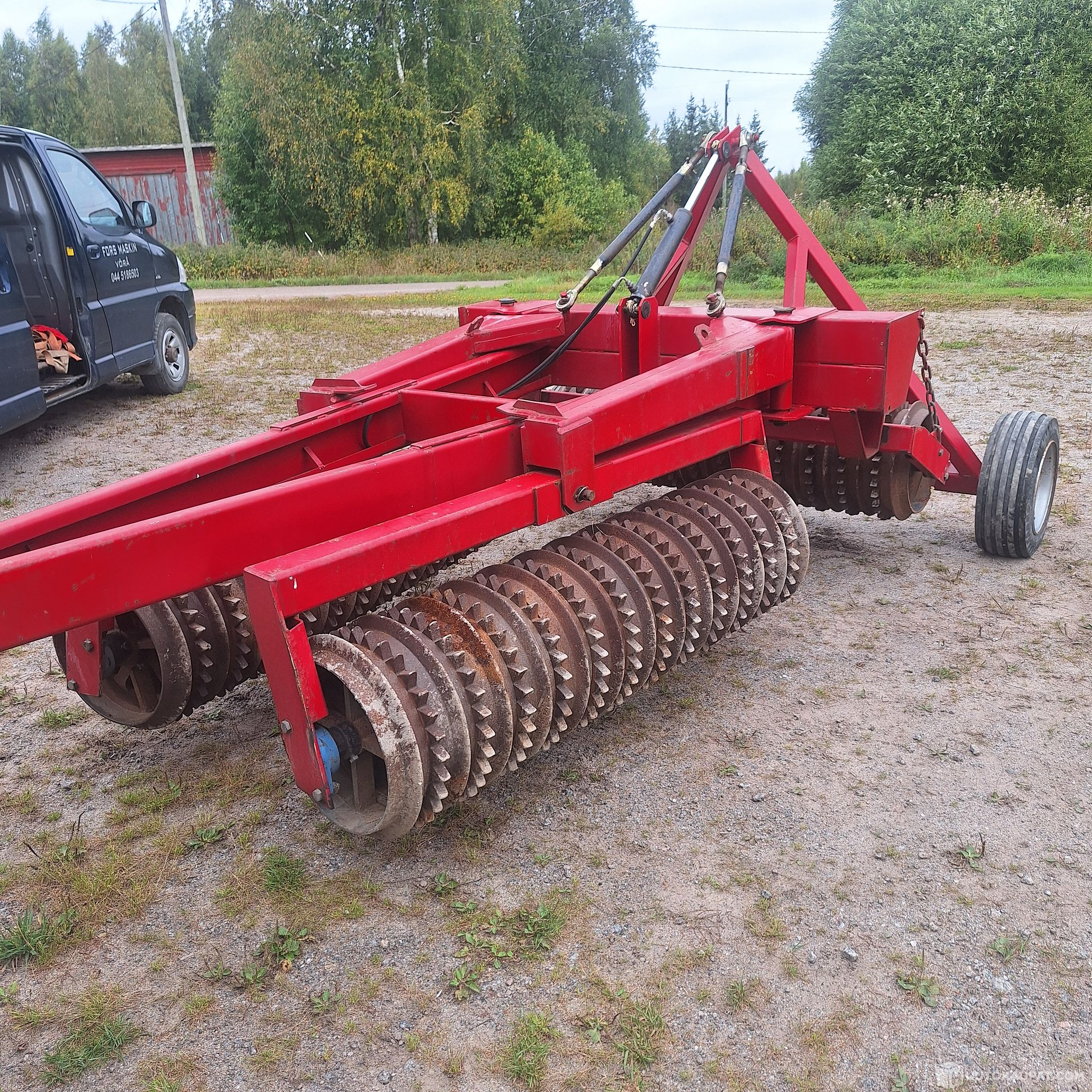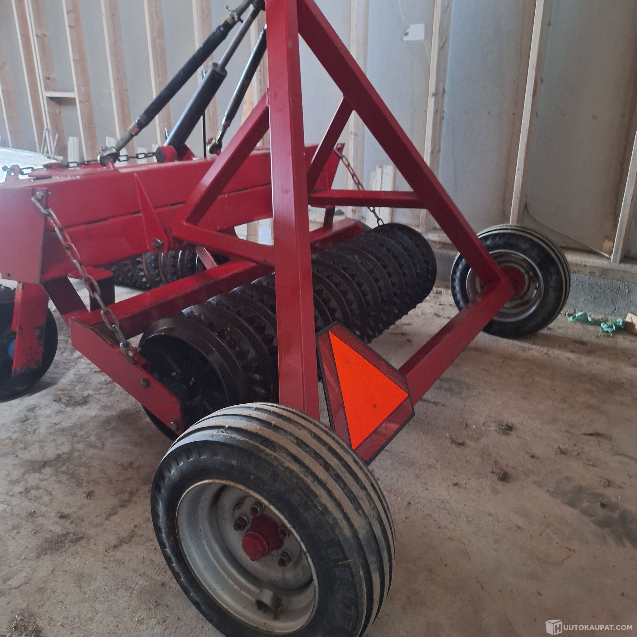 Työkuntoinen peltojyrä leveys 5 m ja renkaat/kiekot 48 cm ,kaikki ovat ehjät,laakerit kunnossa,hyväkuntoiset renkaat ,ei öljyvuotoja,paino noin 2000 kg