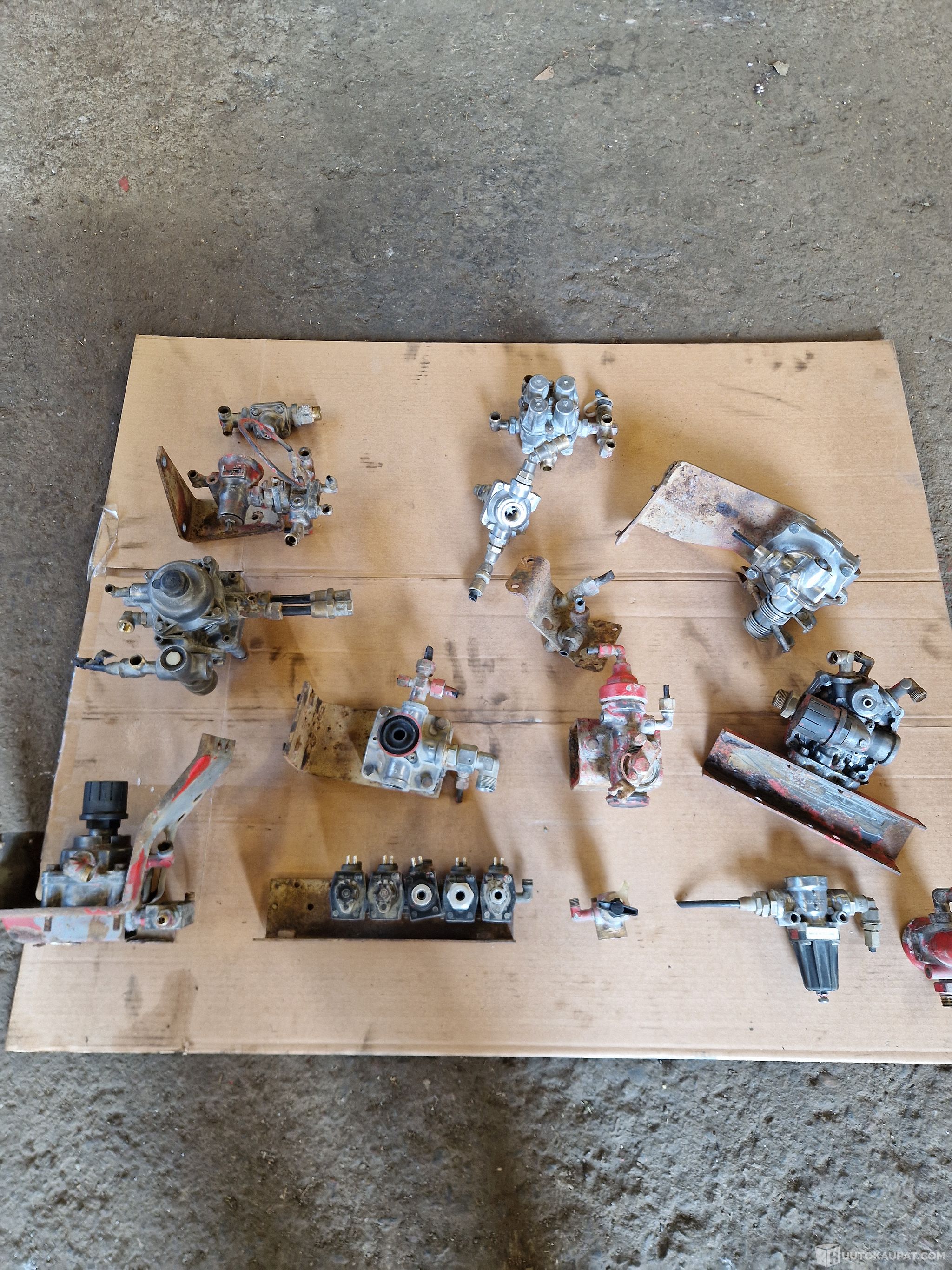 Huutokaupan Scania kuorma-autosta purettuja venttiilejä.