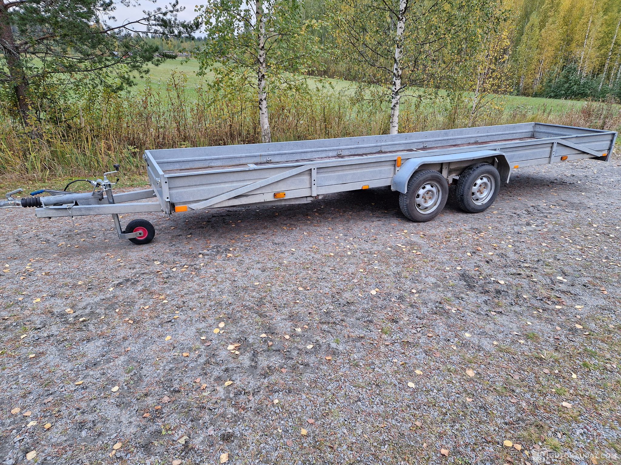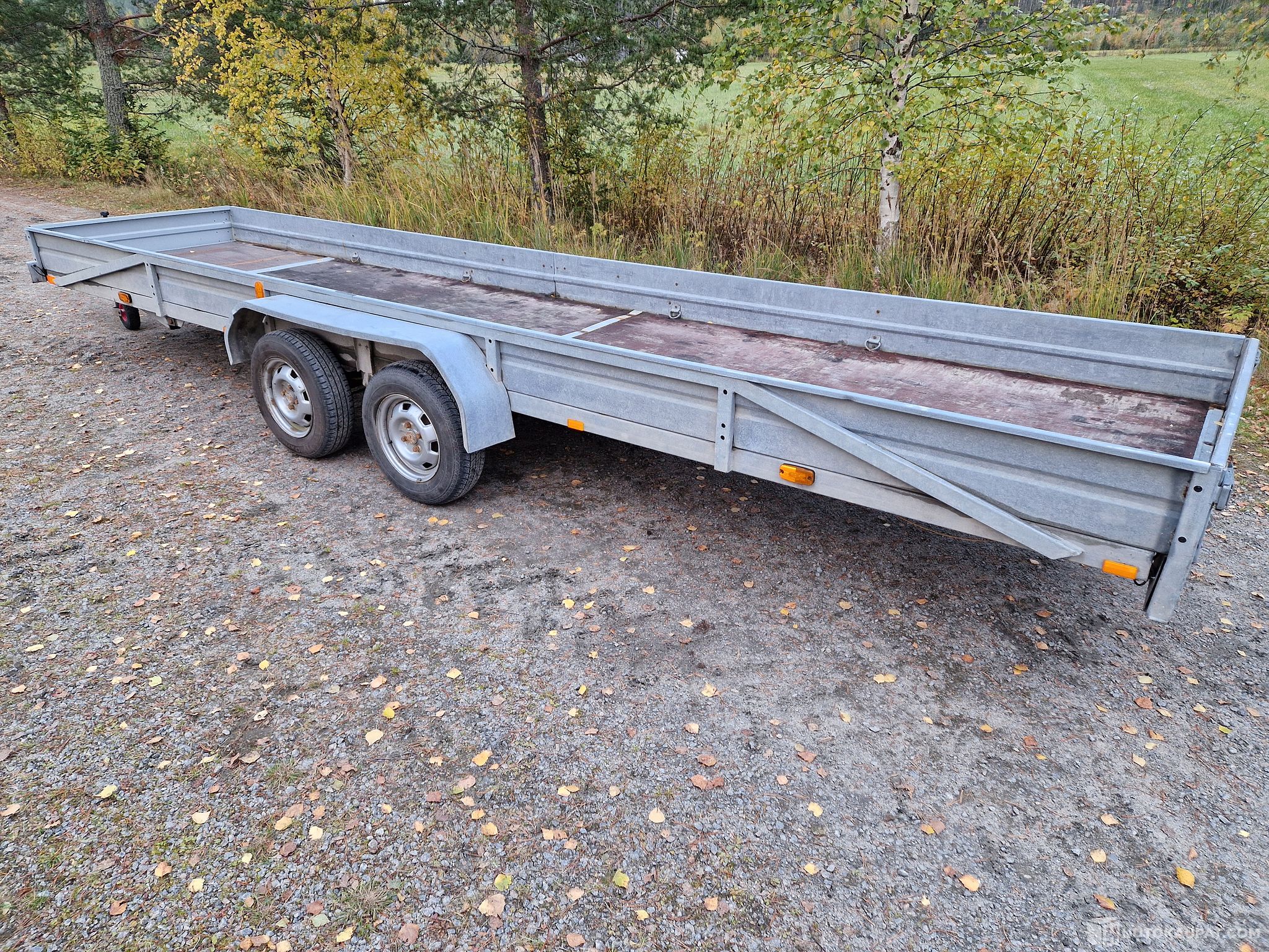 Omavalmiste kärry pitkällä 6 metrin lavalla.