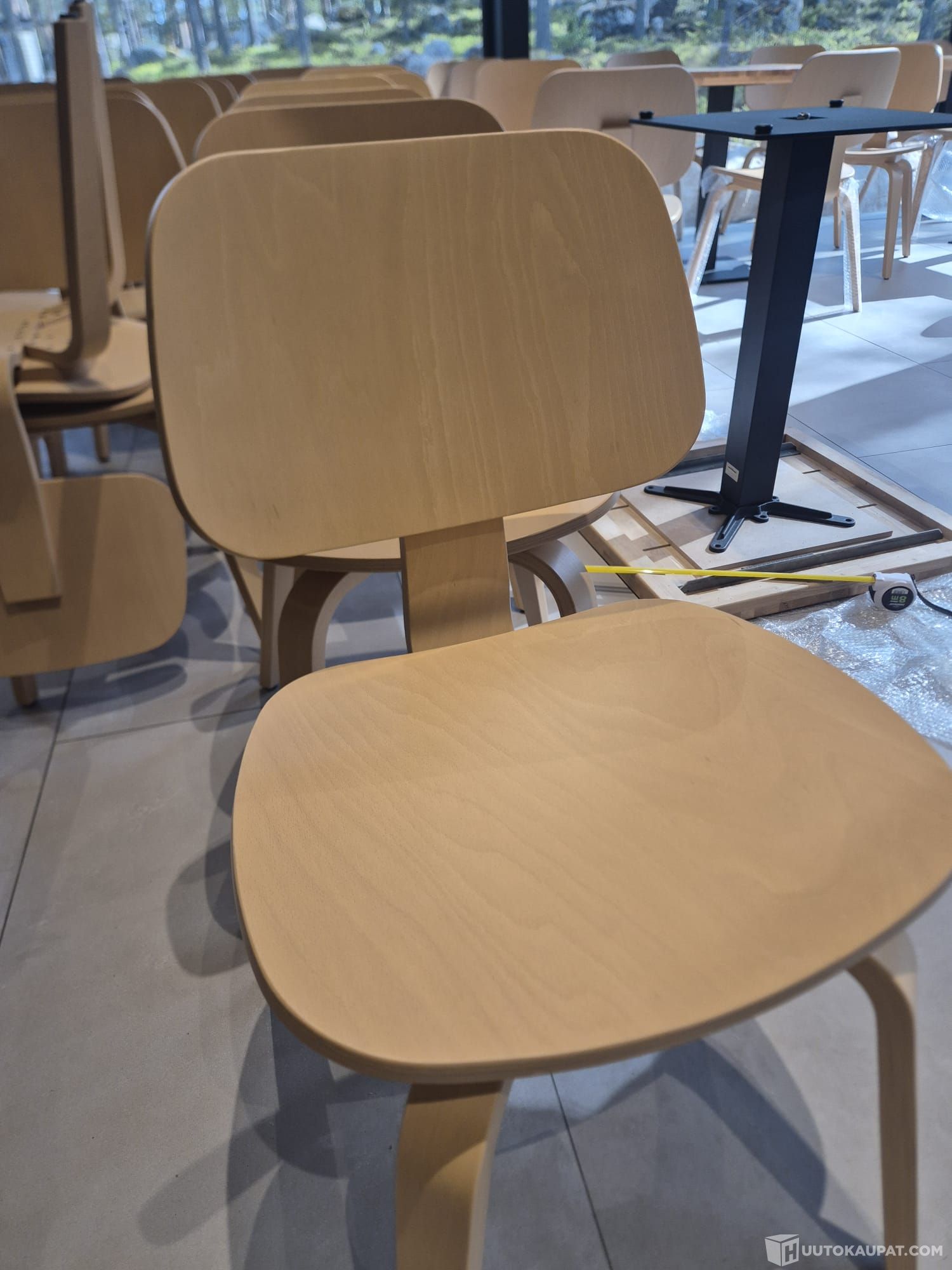 Tarjolla 44 × tuolia + 10 × baarituolia — koivu, ilman istuinpehmustetta