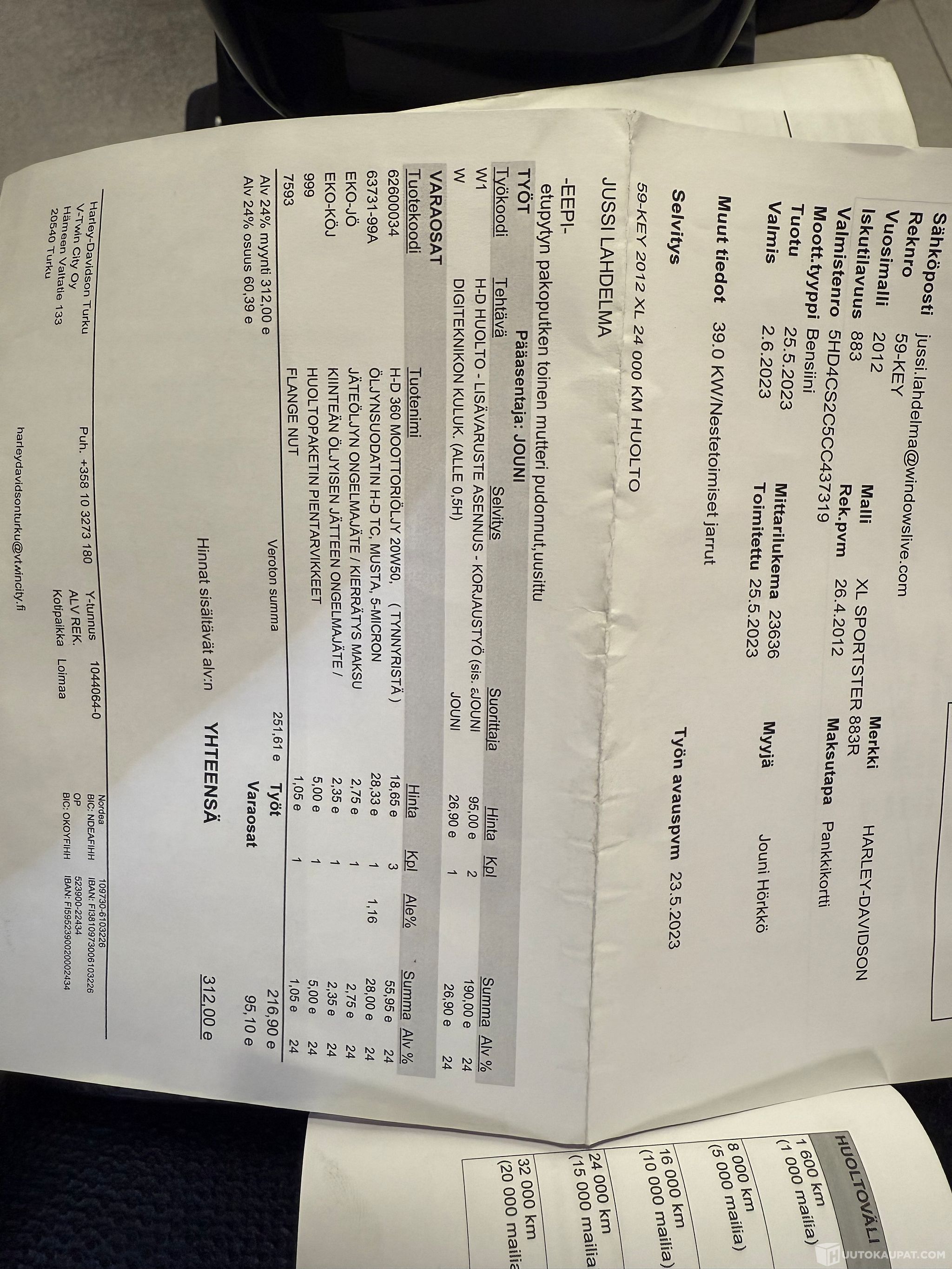 - ***: Säännöllisesti huollettu ja hyvin pidetty. (huoltokirja) Viimeinen huolto 24000km