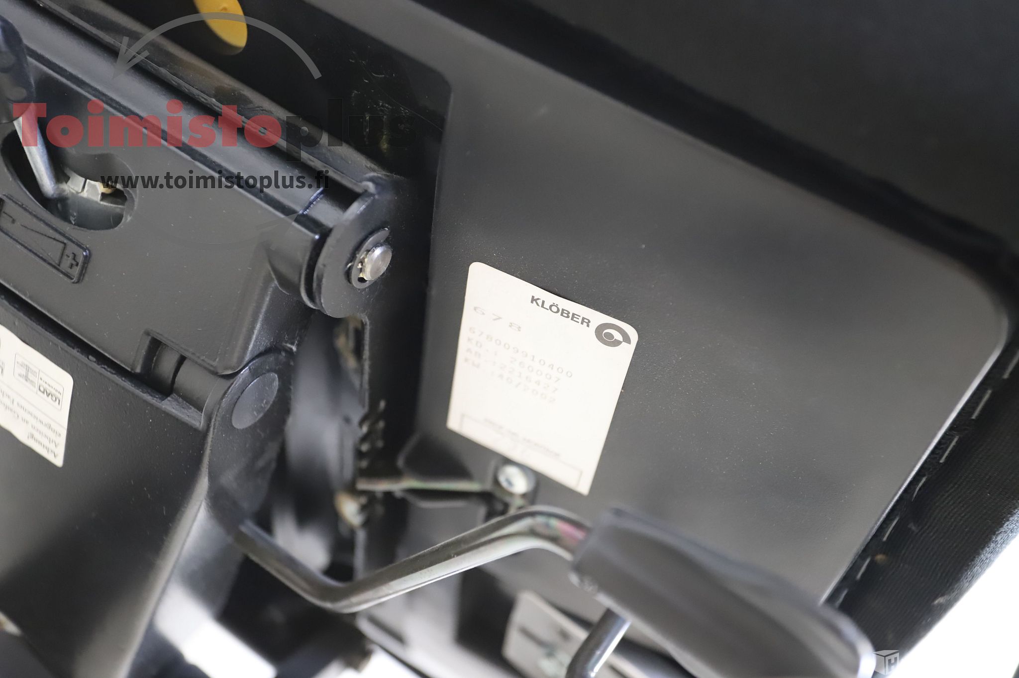 Klöber-työtuoli 1 kpl. Käsinojilla. Mustat, ehjät verhoiluosat. Toimivat säädöt. Verhoiluosissa on hieman likaa.