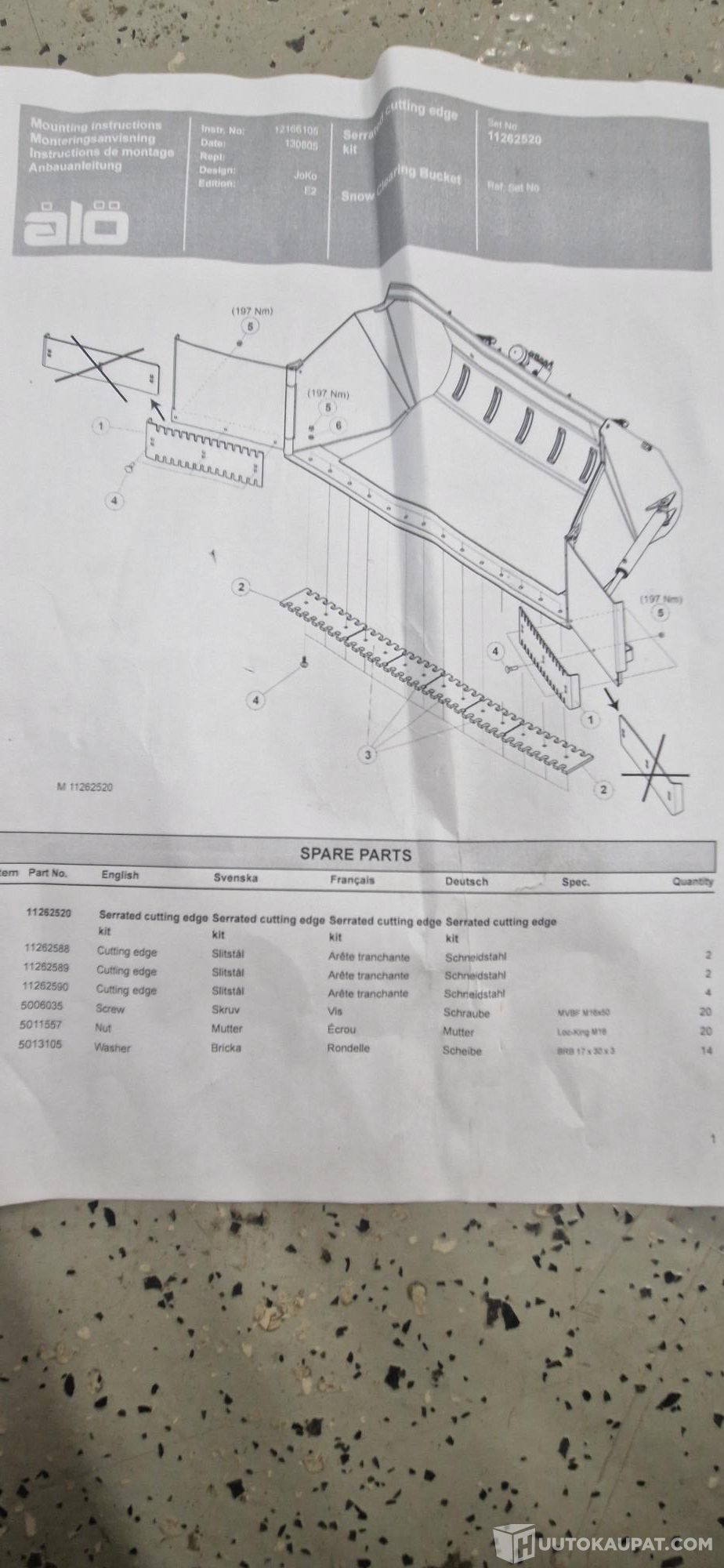 Quicken varaosanumero 11262520, sopii mm. 230SC kauhaans
