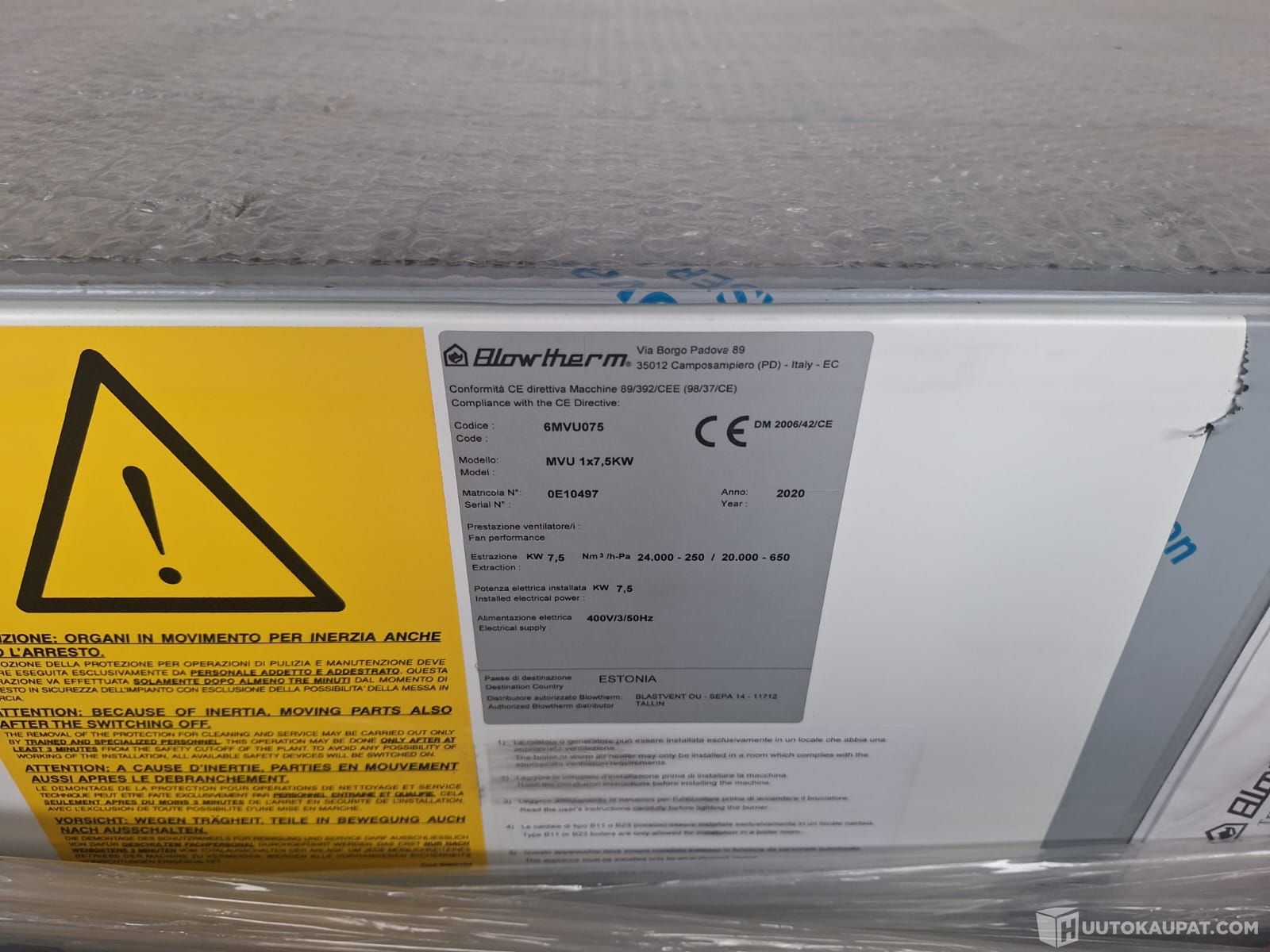 Blowtherm -moduulituuletinyksikkö MVU075, 1 x 7.5 kW, käyttämätön, Pyhäjoki