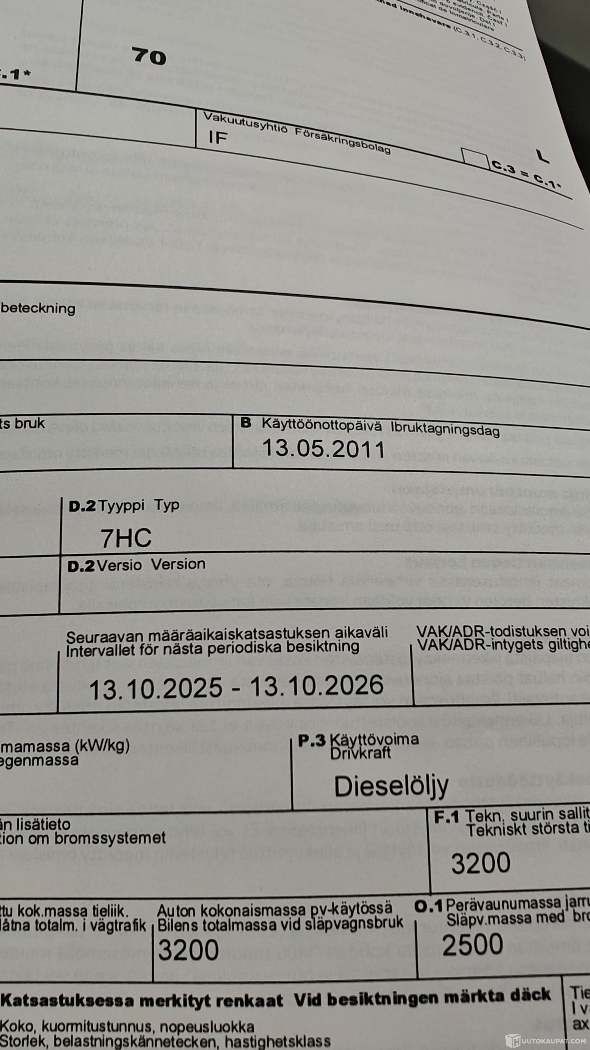 Kokonaismassa 3200 kg
