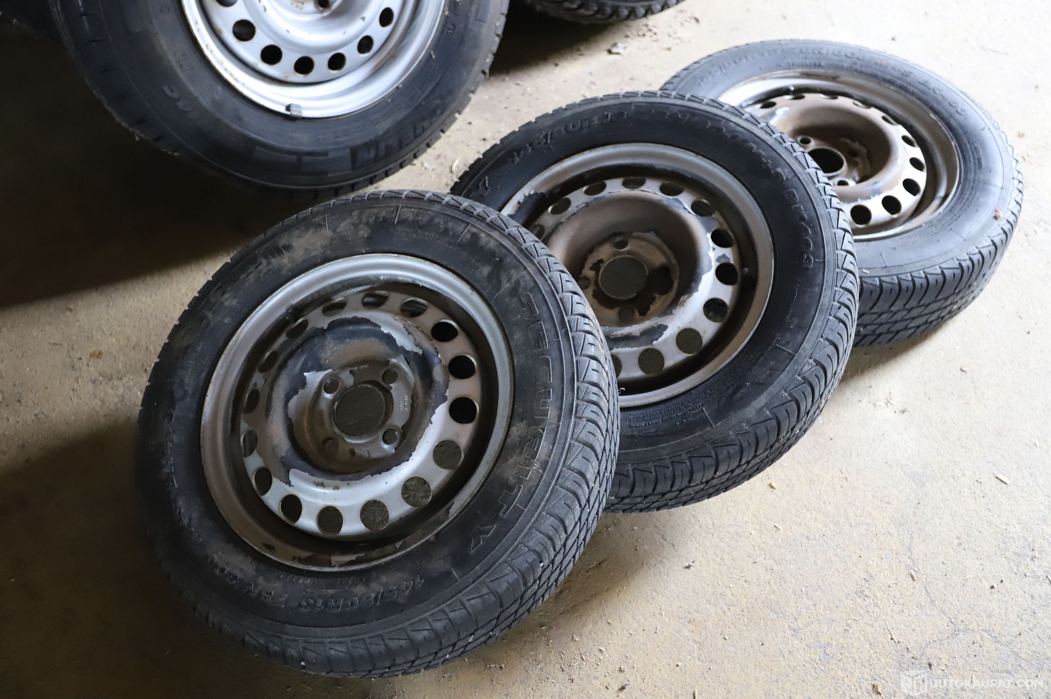 Vanteissa ruostetta, yhden renkaan kumi on kulunut melkein puhki (katso kuvat).