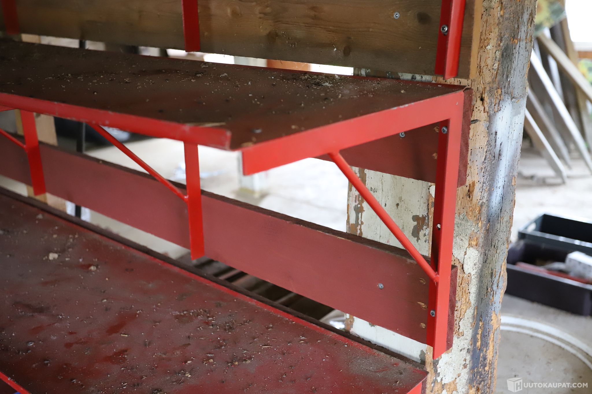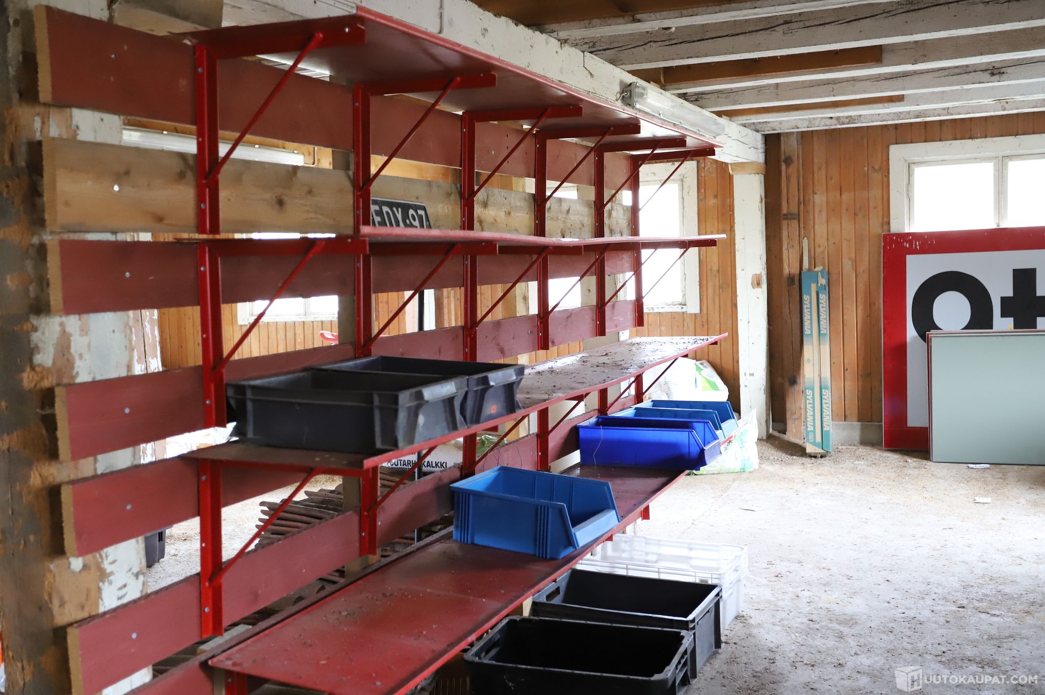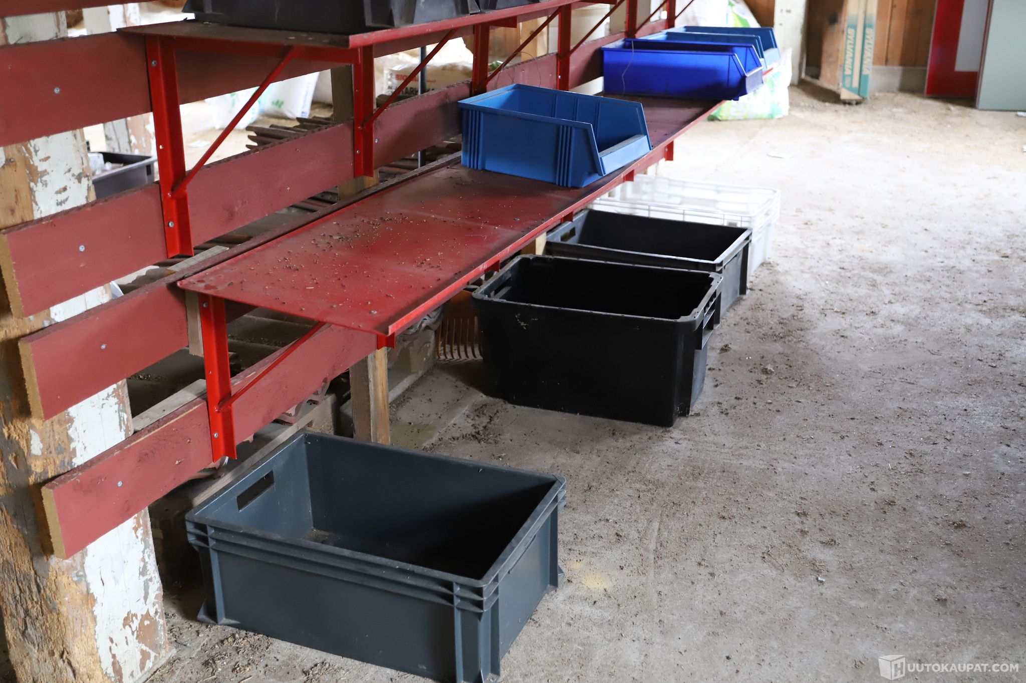 Hyllyissä ja hyllyjen alla olevat otto- ja muuttolaatikot kuuluvat huutoon, muut kuvissa näkyvät tavarat eivät kuulu huutoon.