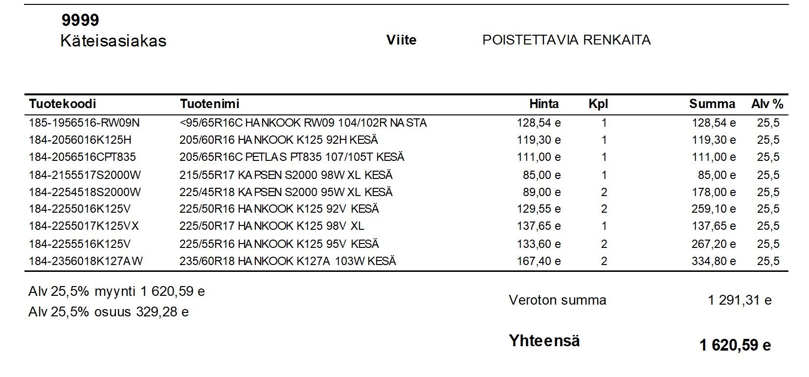Tuotteet noudettava viimeistään 7 vuorokauden kuluessa huudon päättymisestä arkisin klo 9-15.
