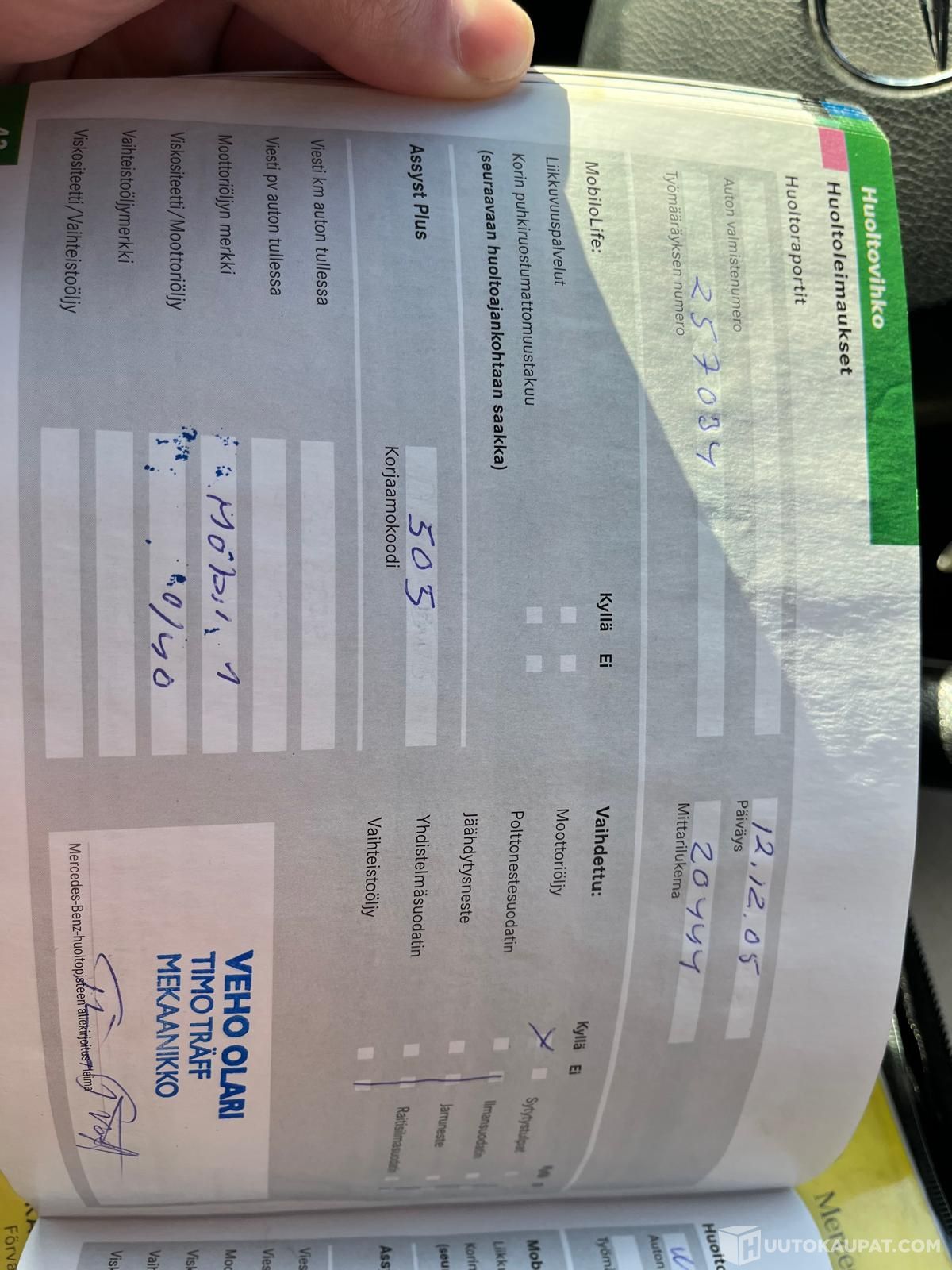 -Huoltoja on tehty huoltokirjan merkintöjen jälkeen satunnaisesti ilman merkintöjä.