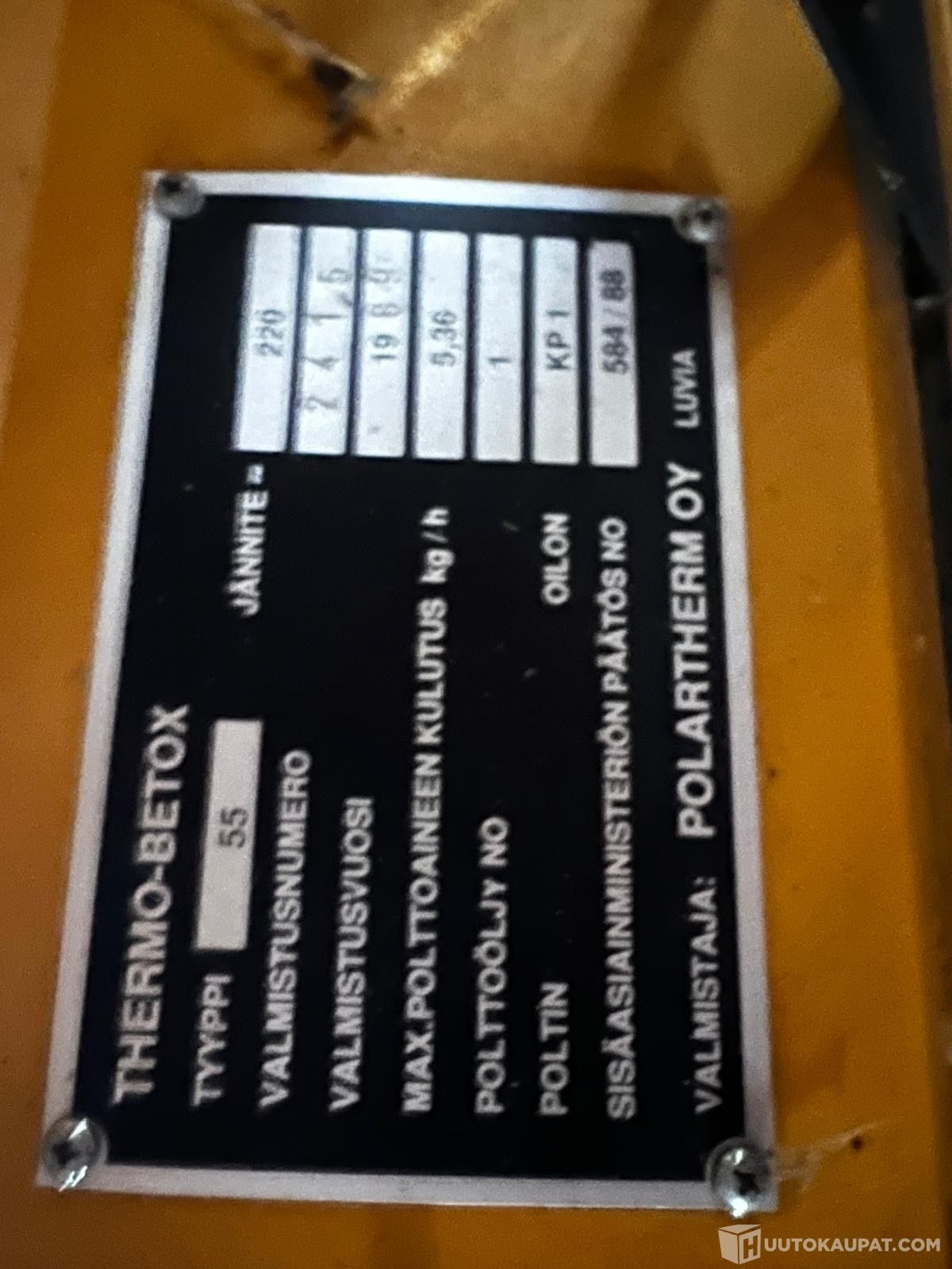 Thermo betox 55 hallilämmitin. Ollut säilytyksessä ja on edelleen Nurmijärvellä, mistä nouto. Myydään toimivana.