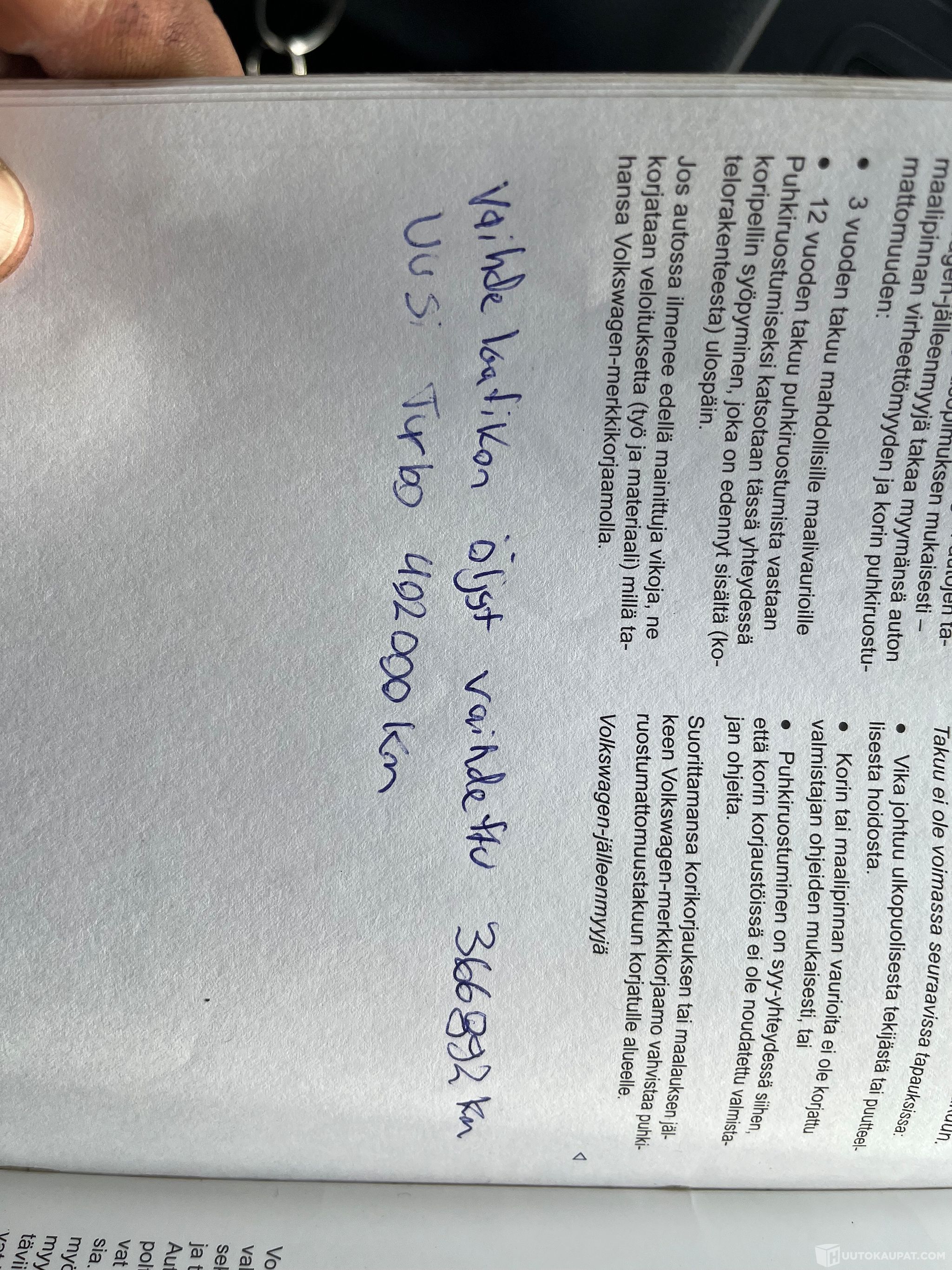 Auto varastopäällikön ajossa päivittäin eli kilsoja tulee lisää koko ajan.