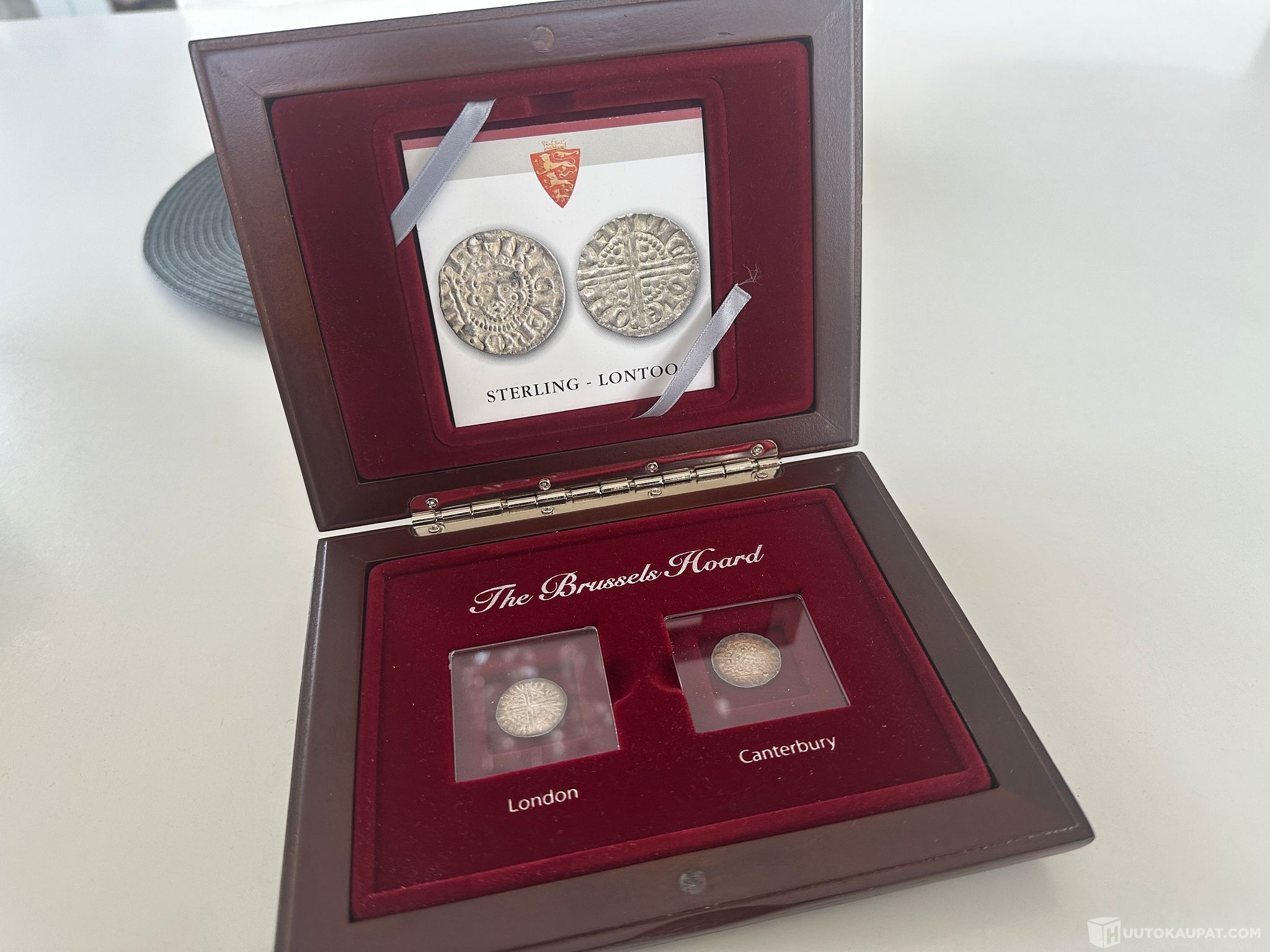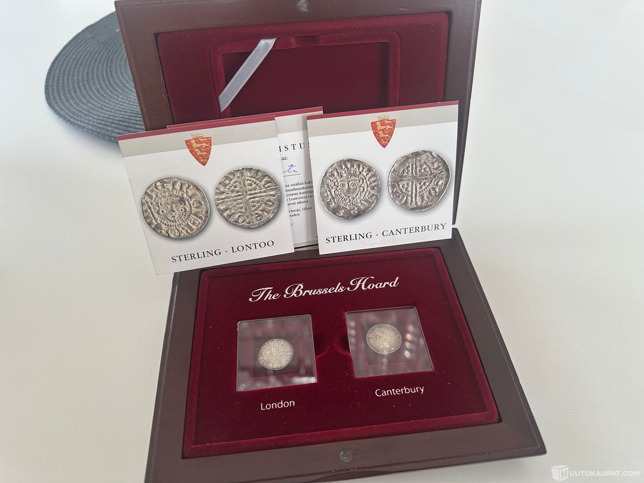 Kokoelma sisältää kaksi hopeista sterling-rahaa vuonna 1908 tehdystä maailmankuulusta aarrelöydöstä.