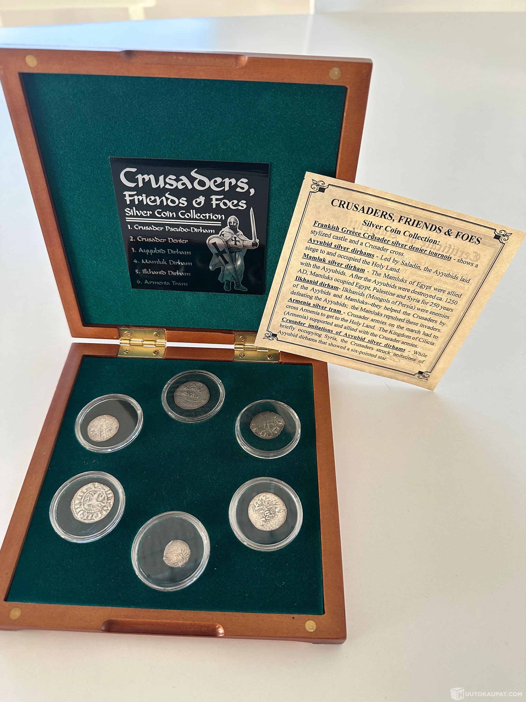 Crusaders Friends & Foes hopearahakokoelma,kuusi hopearahaa ristiretkien ajoilta puisessa kotelossa., Lapinlahti