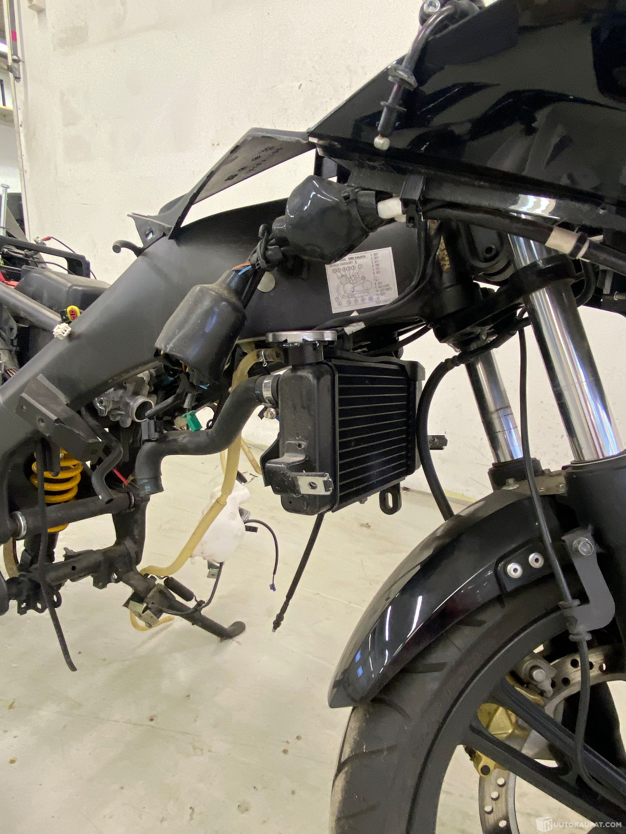 Koulutuskäytössä ollut, ei runkonumeroa, ei saa rekisteriin, katteita, vanteet+ renkaat, iskarit, takahaarukka, syyläri ok
