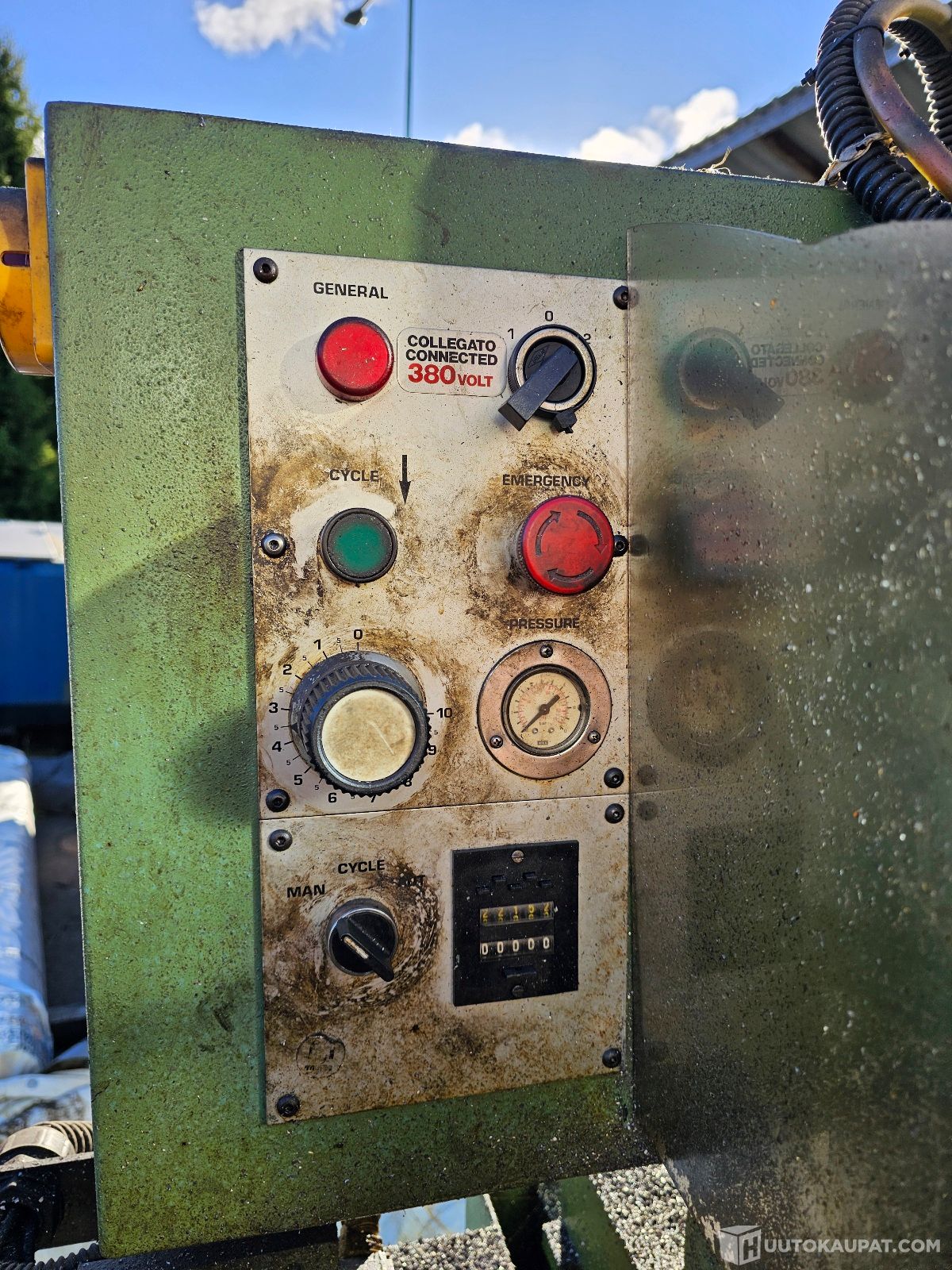 Koneen syöttö ei toimi. Vika luultavasti jossain ohjauksessa. Myydään varaosiksi, koneessa on runsaasti toimivia komponentteja.
