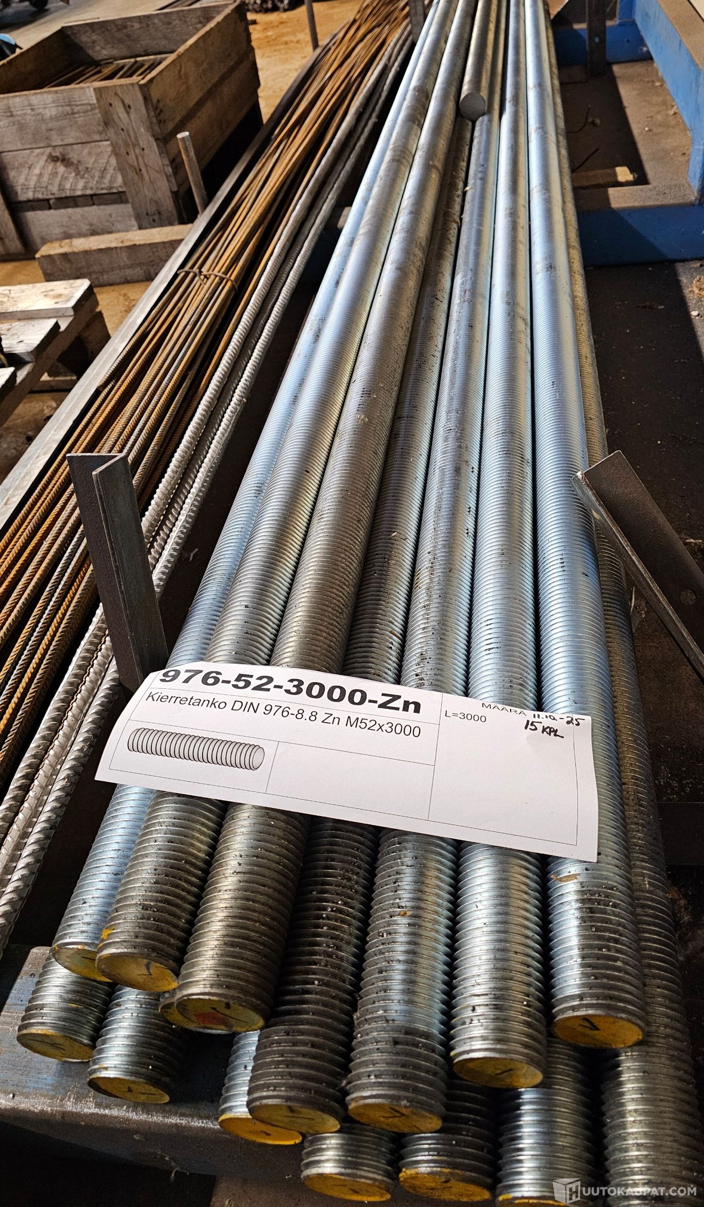 45 metriä (15 kankea) kierretankoa DIN 976-8.8 M52x3000 mm Zn sinkitty, Salo