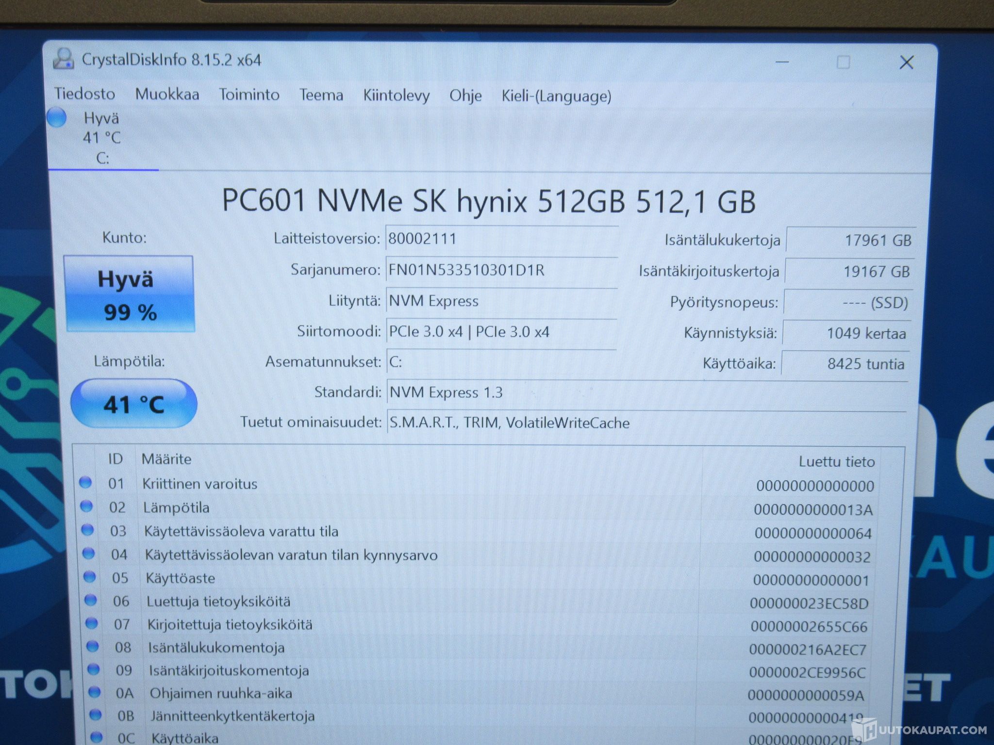 Kiintolevy: 512 Gt PCIe NVMe M.2 SSD