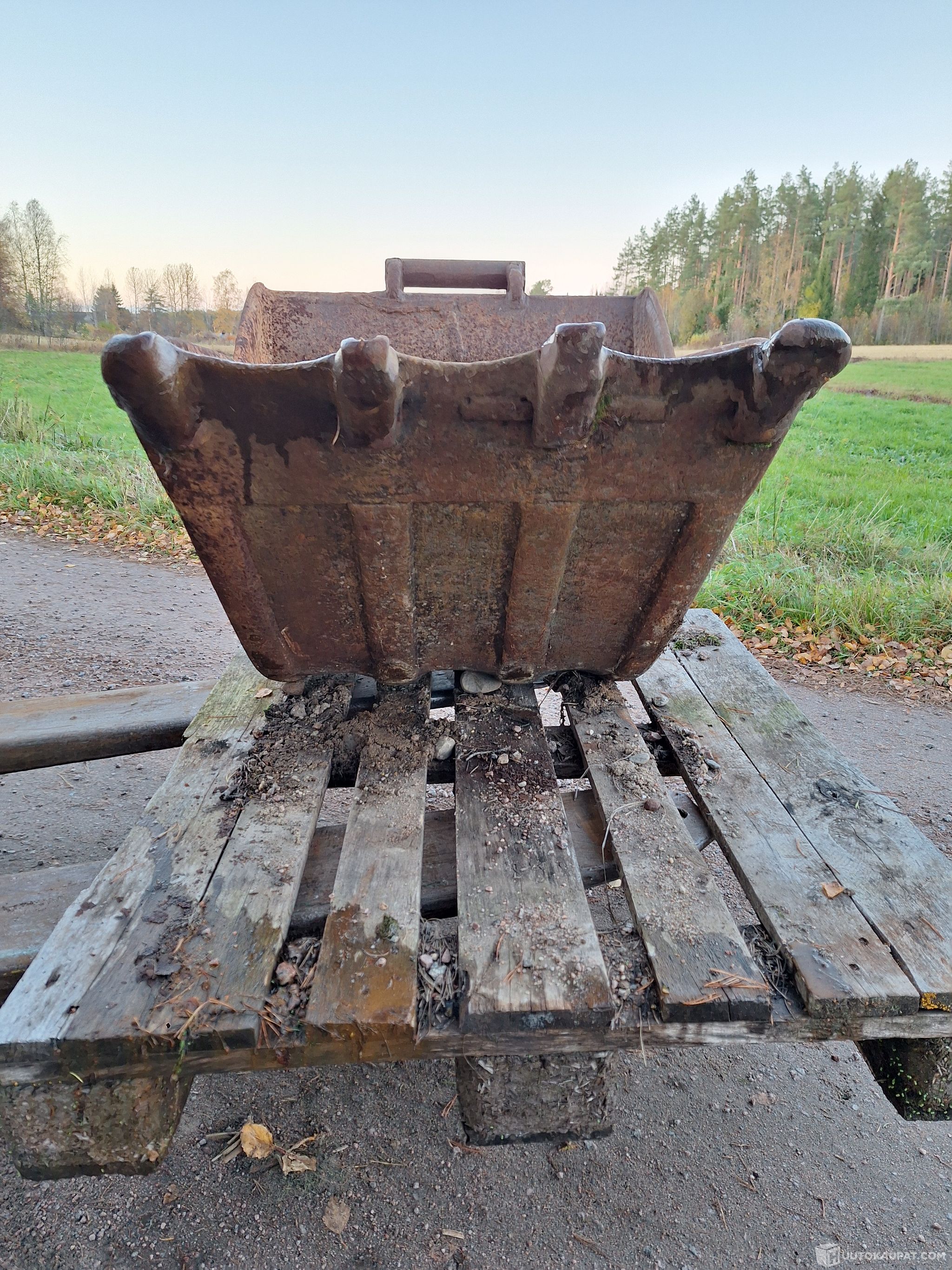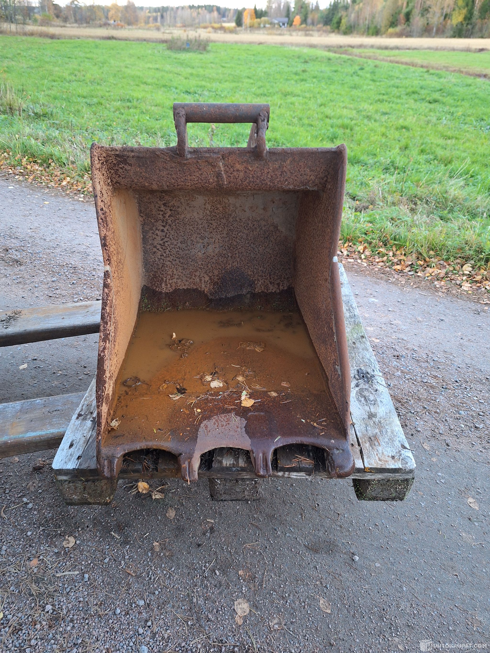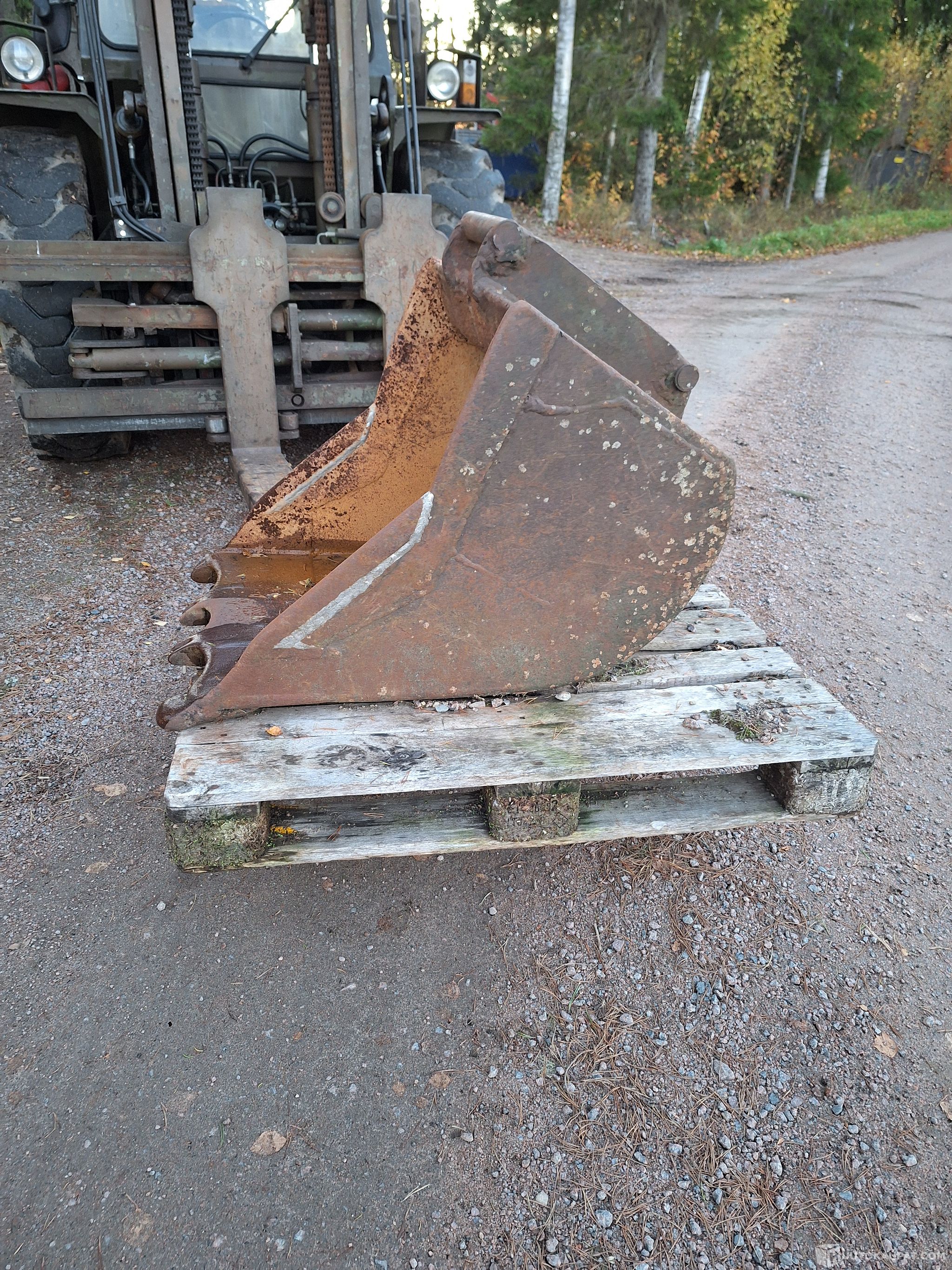 Kuvien mukainen kuokkakauha traktorikaivuriin tai muuhun harrastekoneeseen. Mitat kuvissa.