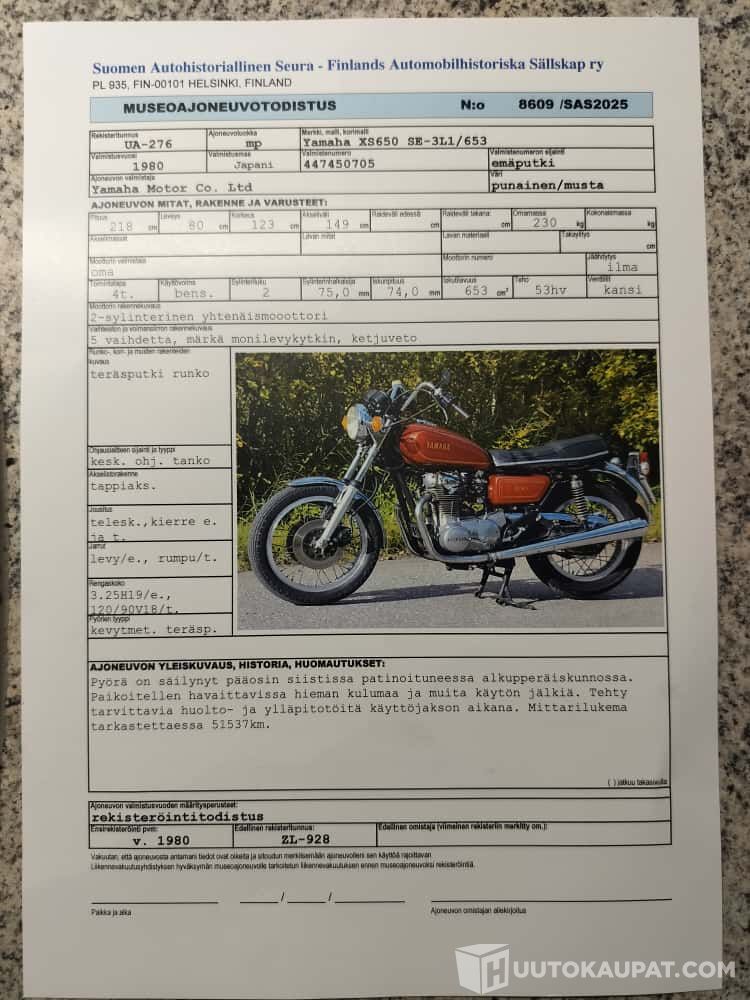 Yamaha XS650, Museorekisteröity, 1980, 51500 km, Kaarina
