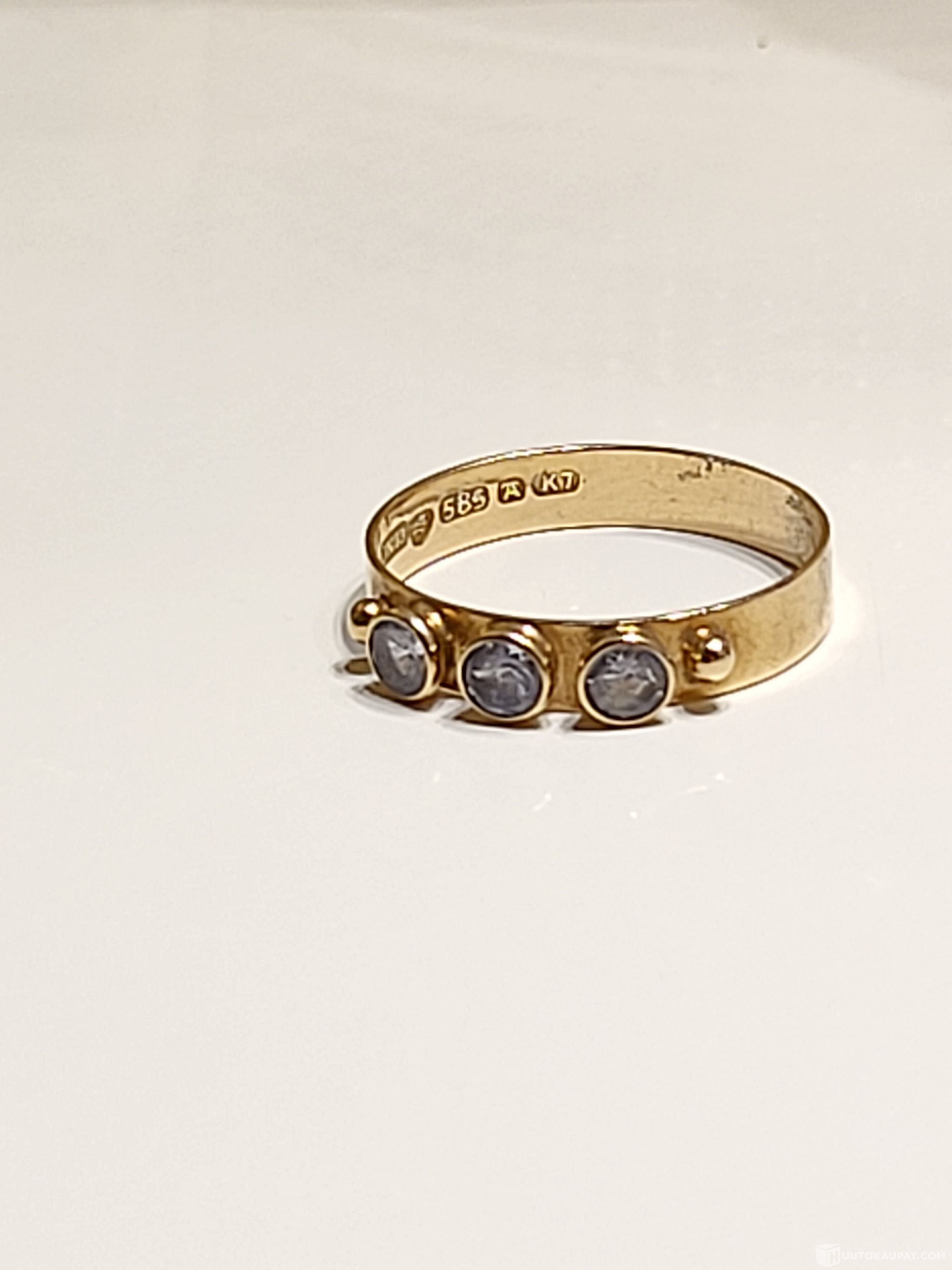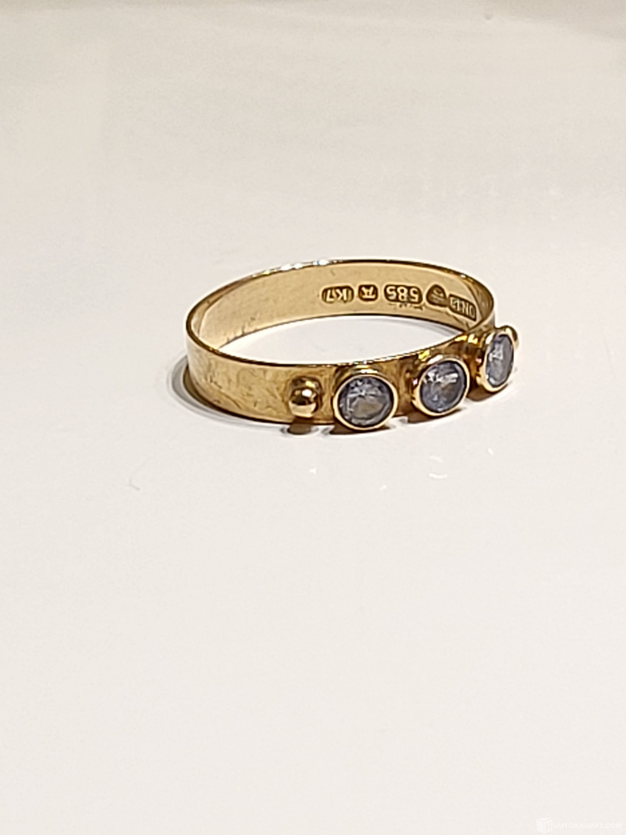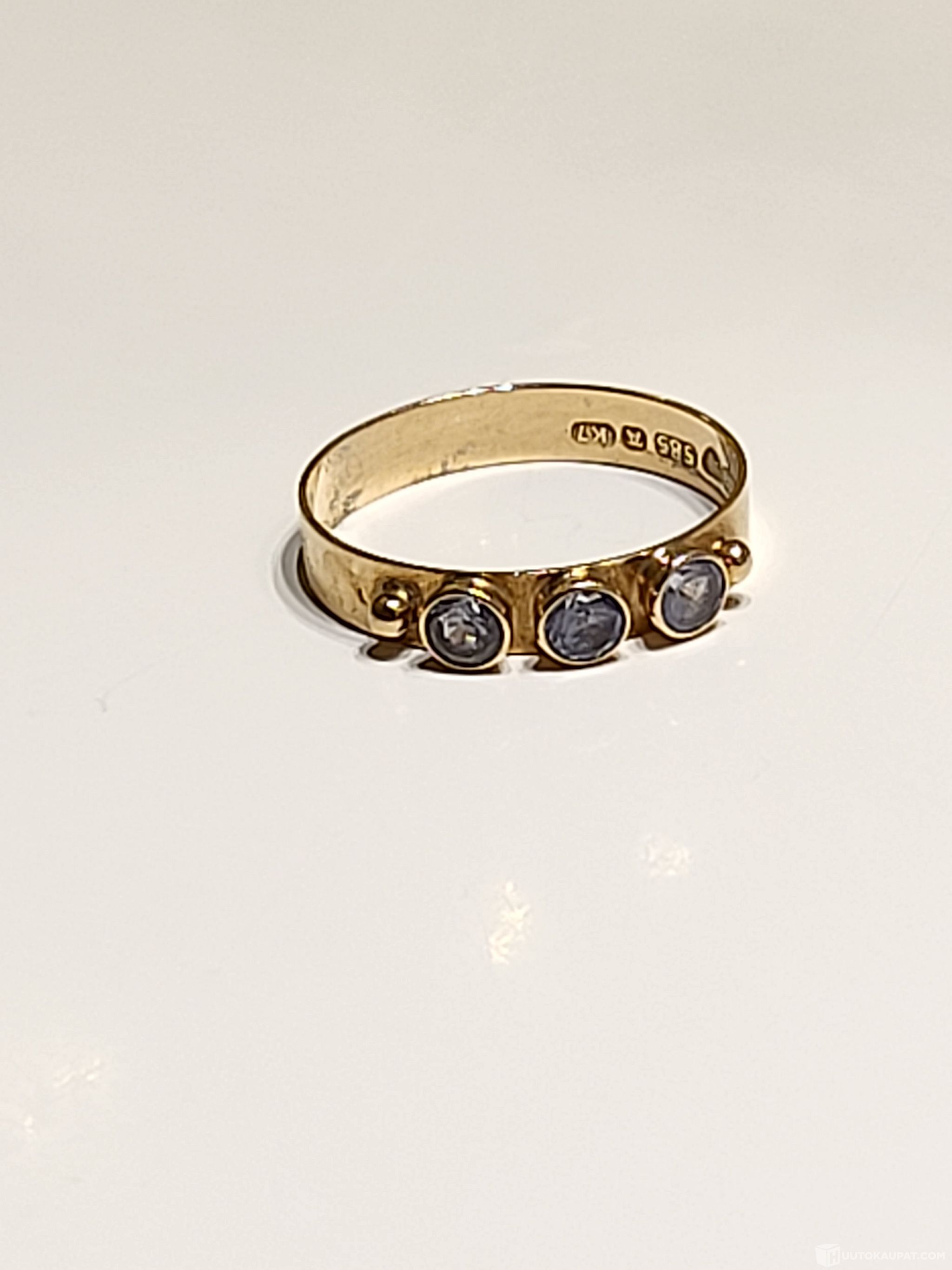 14K 585 Kultainen sormus, 3 taivaansinistä kiveä, Isokyrö