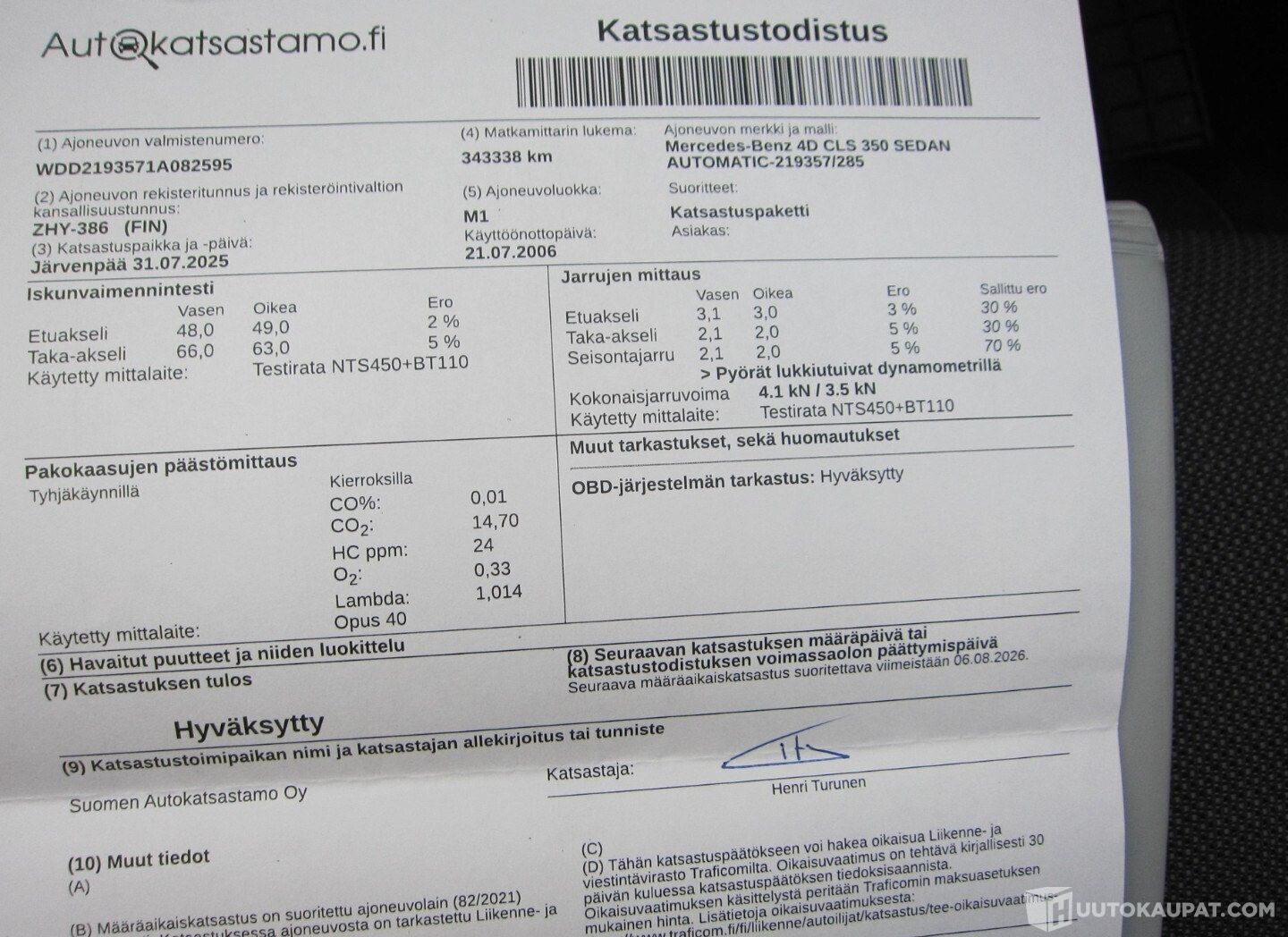 Huoltohistoria ja kunto: