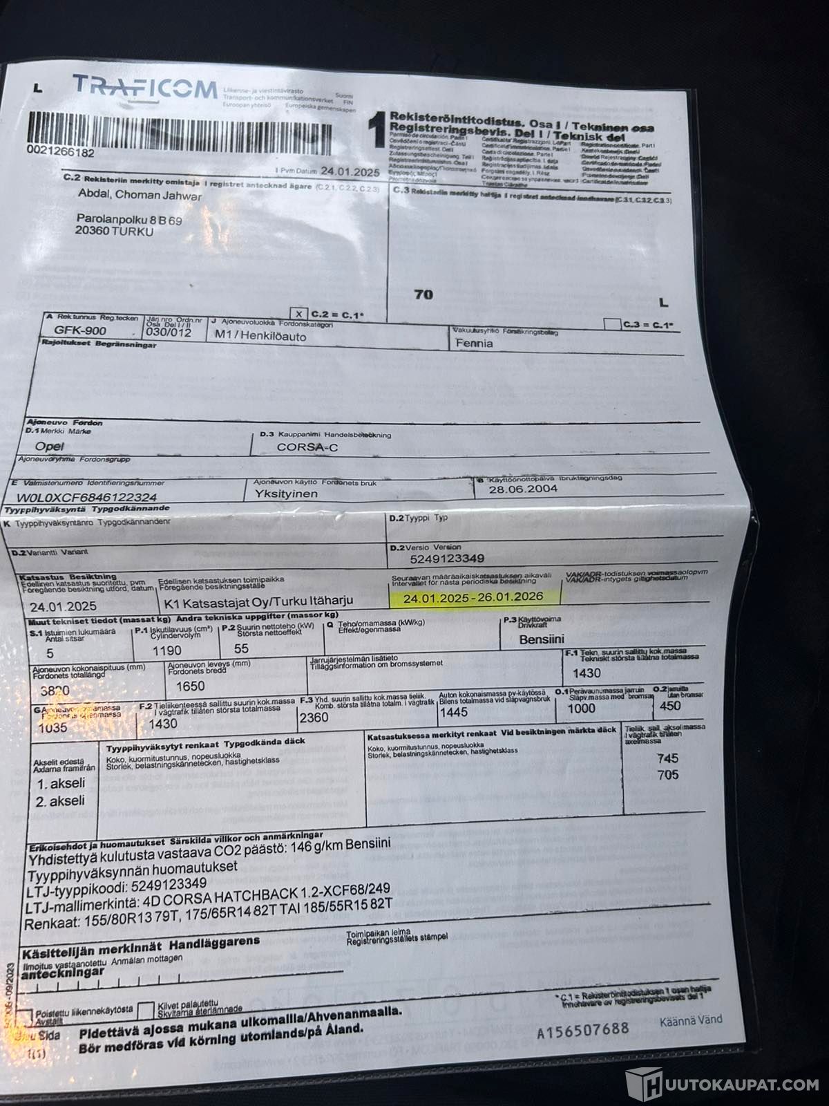Ajoneuvo noudettava 7vrk kuluessa huutokaupan päättymisestä ellei toisin sovita -Huutokaupat.com.